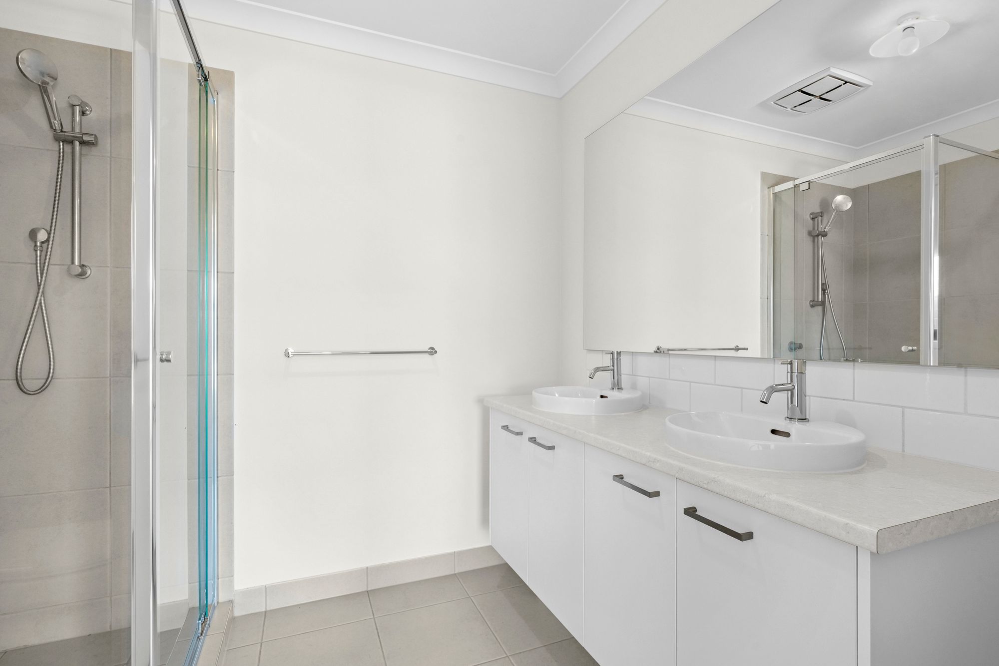 Master Suite: Generously sized and situated at the front of the home, it showcases a spacious walk-in robe and elegant ensuite. Complete with East-facing windows with blockout blinds and ducted heating, creating a comfortable space year-round. The gorgeous ensuite consists of a wide shower with a handheld and wall-mounted showerhead, dual basins on a large vanity with tiled and mirrored splashbacks and toilet.