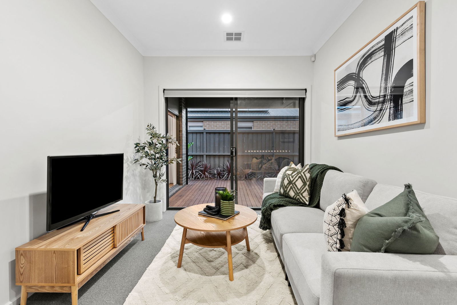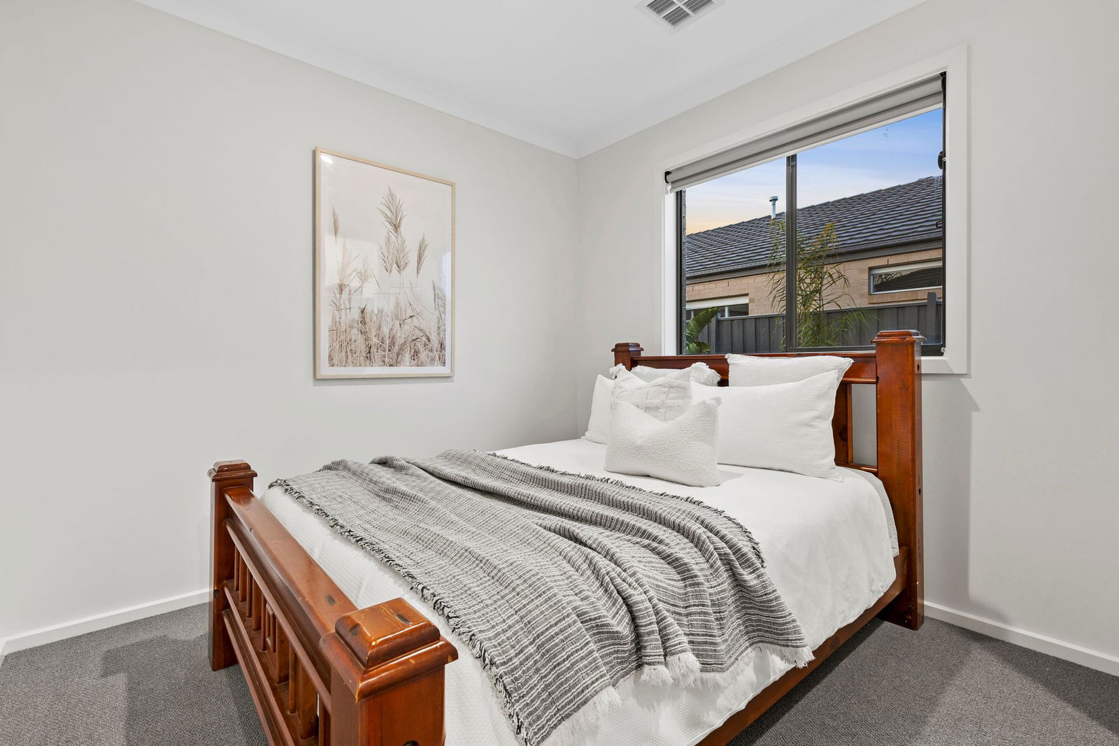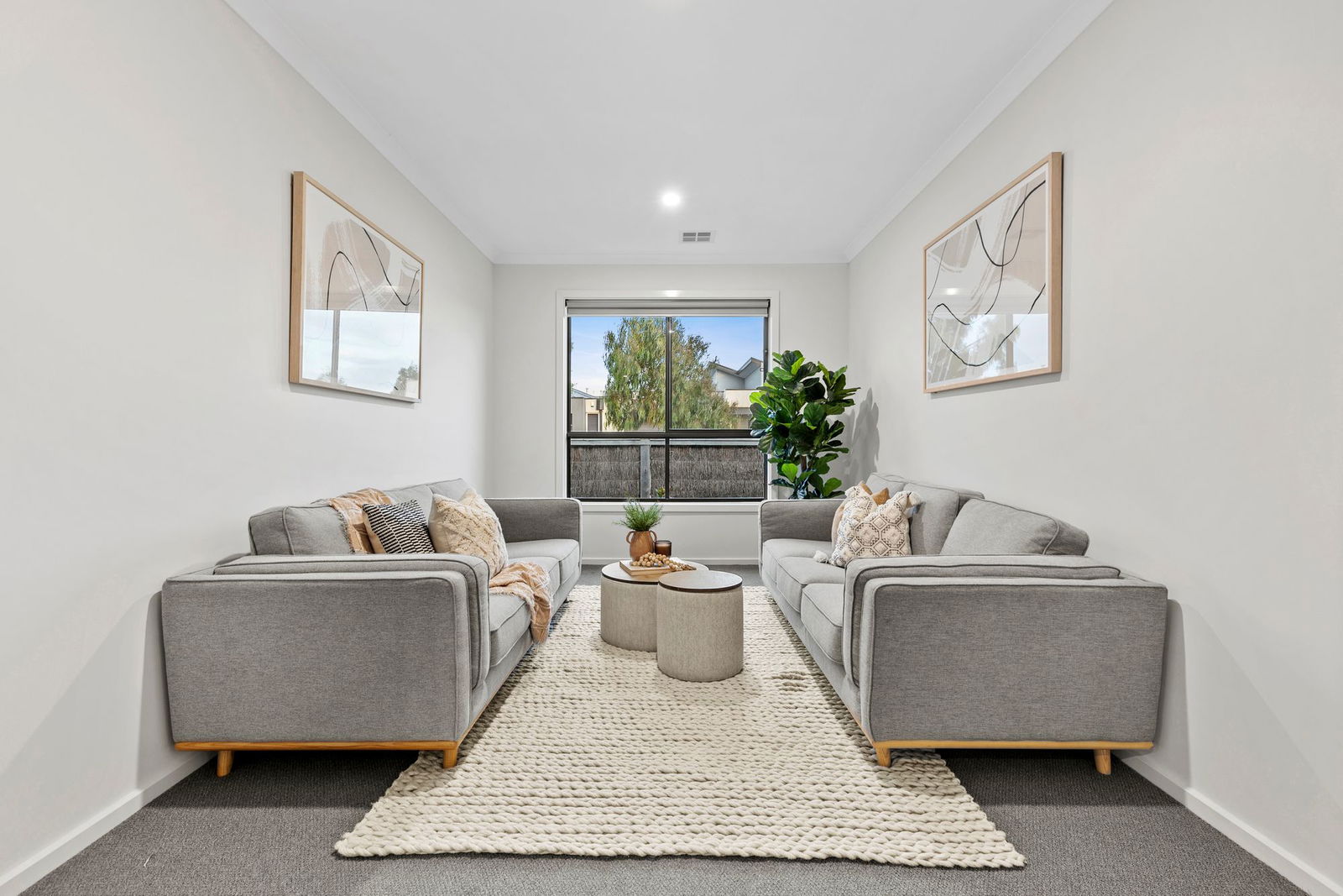 This spacious family home caters to all the essentials and luxuries for a growing family. Boasting an incredible colour pallete and upgrades throughout, three living areas, a delightful master suite with wrap-around walk-in robe, and three additional bedrooms, two equipped with walk-in wardrobes and the third with built-in wardrobe, ensuring all year comfort for the entire family with ducted heating and evaporative air-conditioning throughout. The stylish kitchen boasts a great sized 40mm stone benchtop island waterfall bench with timeless cabinetry and fittings, complete with a walk-in pantry for ample storage. The seamless connection between the kitchen/dining/living area and the outdoor entertainment space makes this home an ideal venue for hosting family and friends. Positioned in a superb and convenient location near Iona College, Geelong Lutheran College, Armstrong Creek School, Oberon High School, Armstrong Creek Town Centre, The Village Warralily, nearby walking and bike paths, future sporting, retail and community precincts.