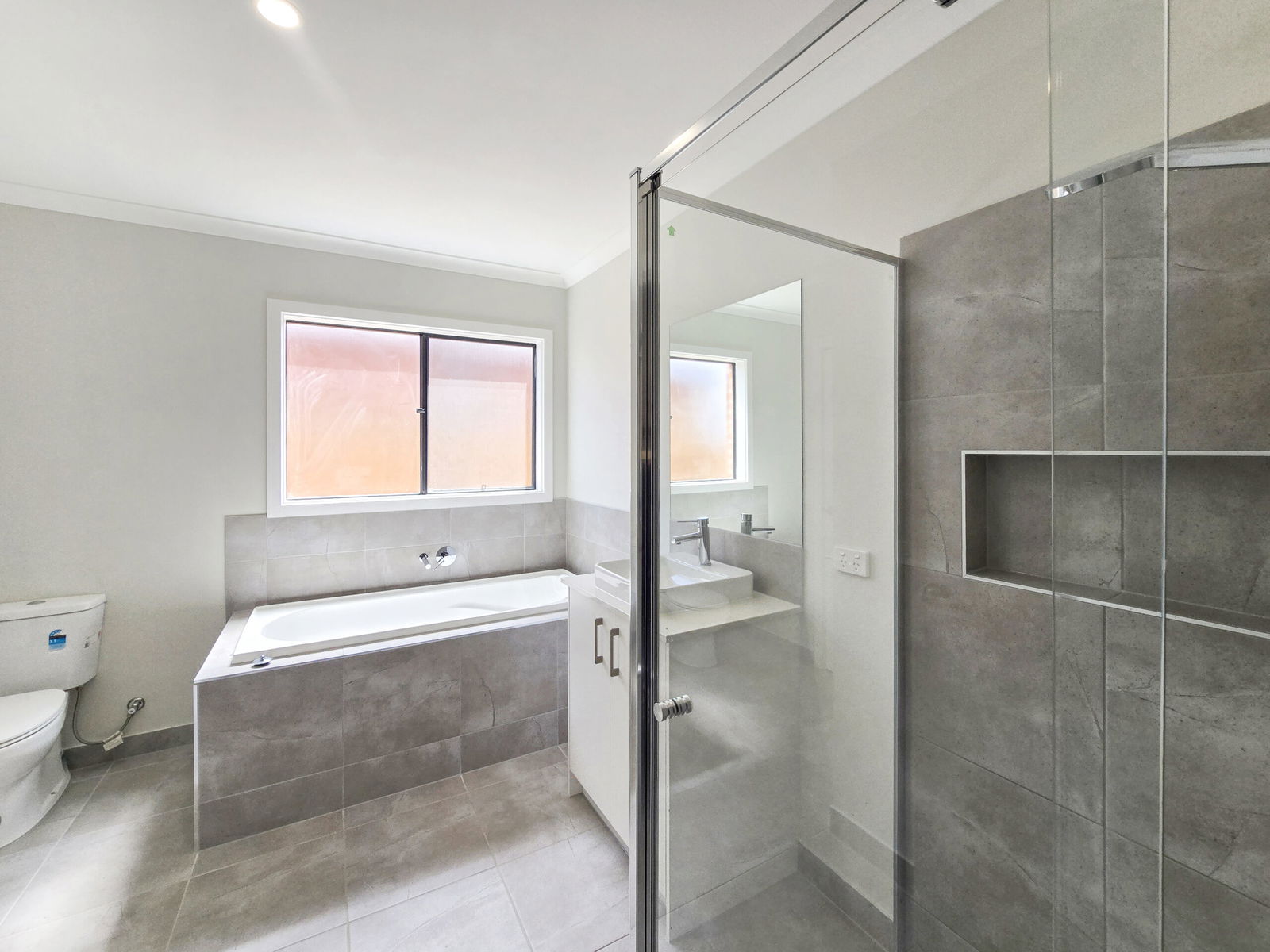 – Master bedroom with a split system unit, walk in robe and ensuite with shower, vanity and toilet