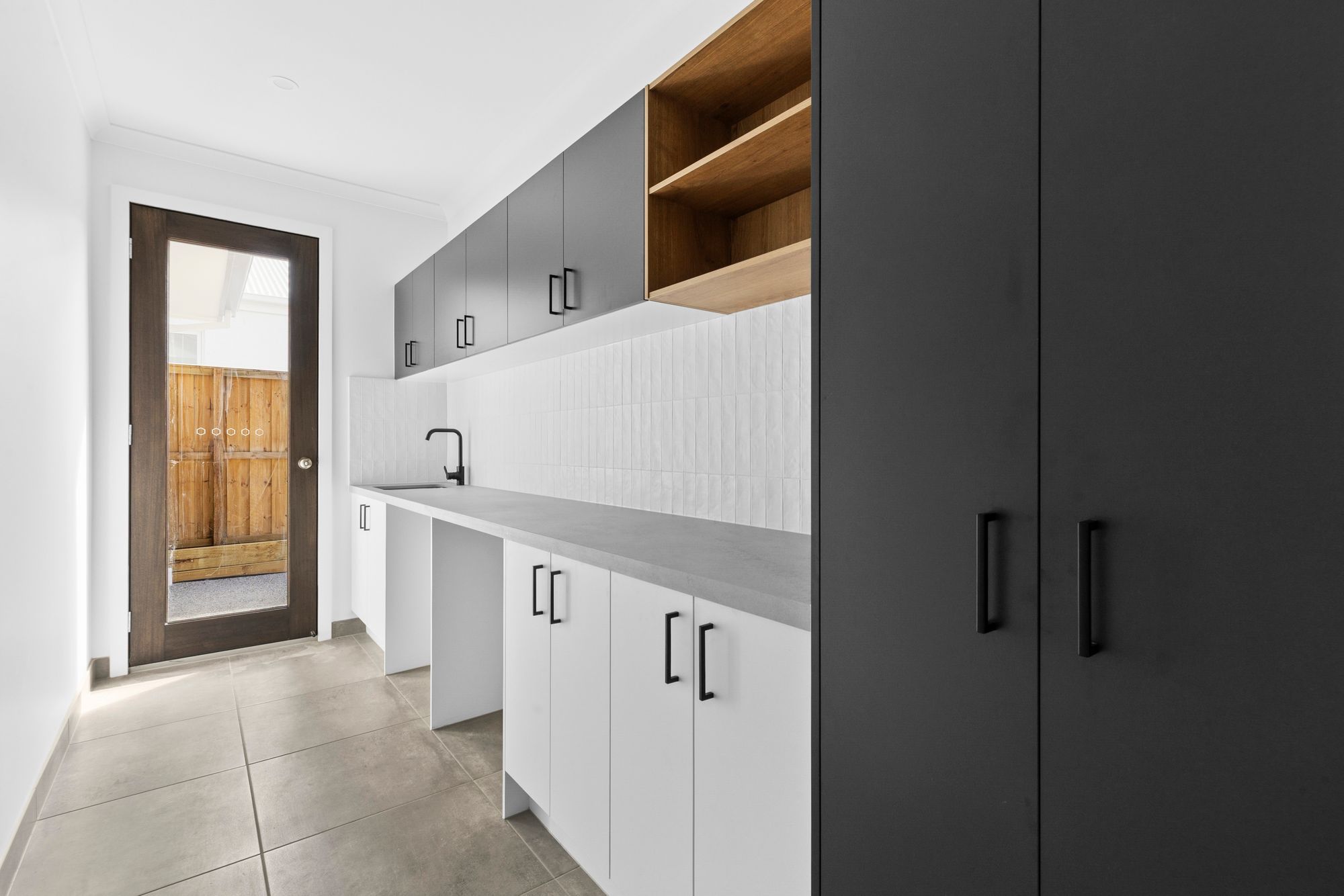 – Spacious laundry room with plenty of cupboards for storage, dryer space, and an external door leading next to the clotheslines
