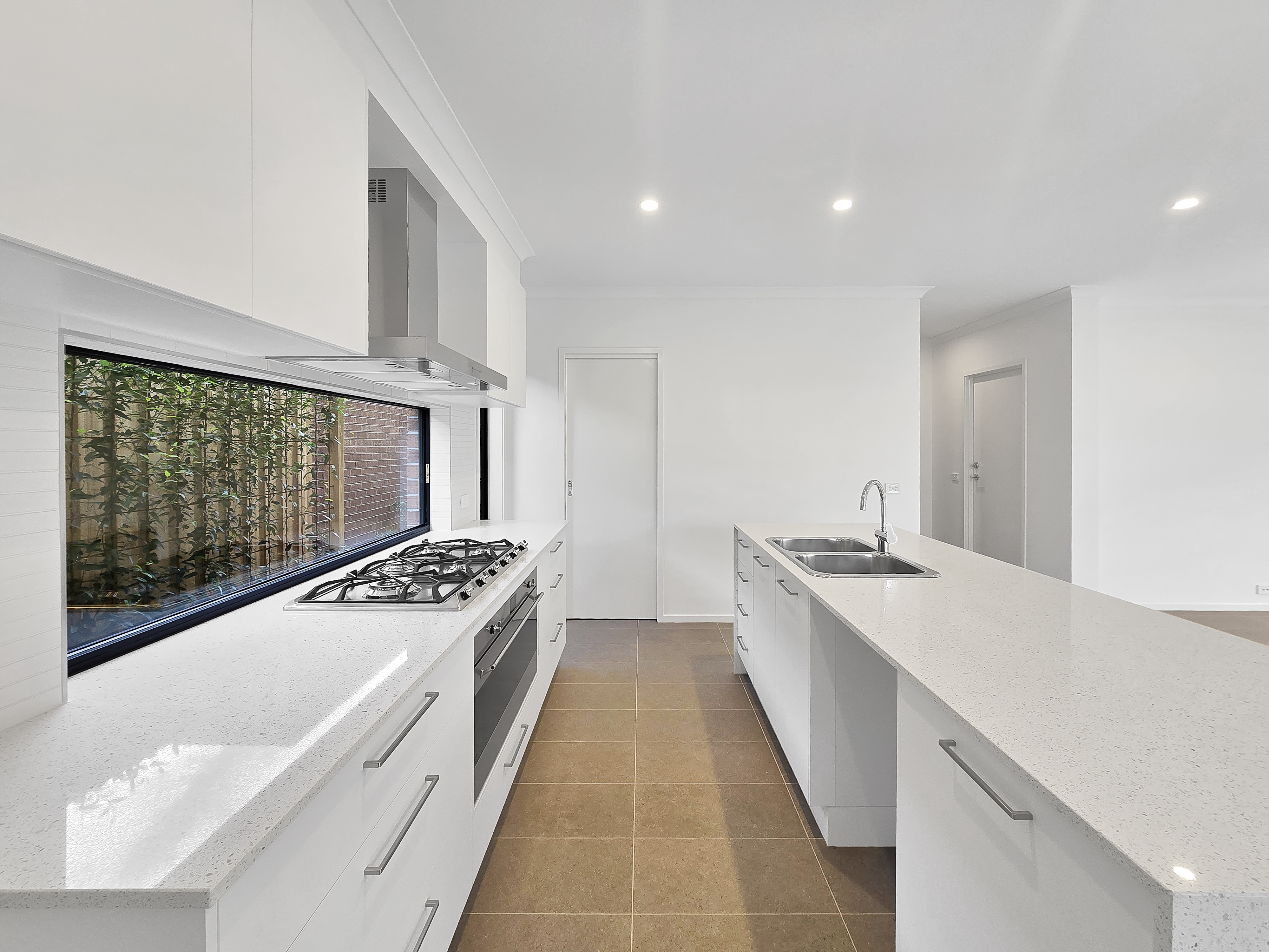 – Large kitchen with stone bench tops, 5 burner gas cook-top, 900mm oven, dishwasher (to be installed before tenancy), large fridge space and walk-in pantry