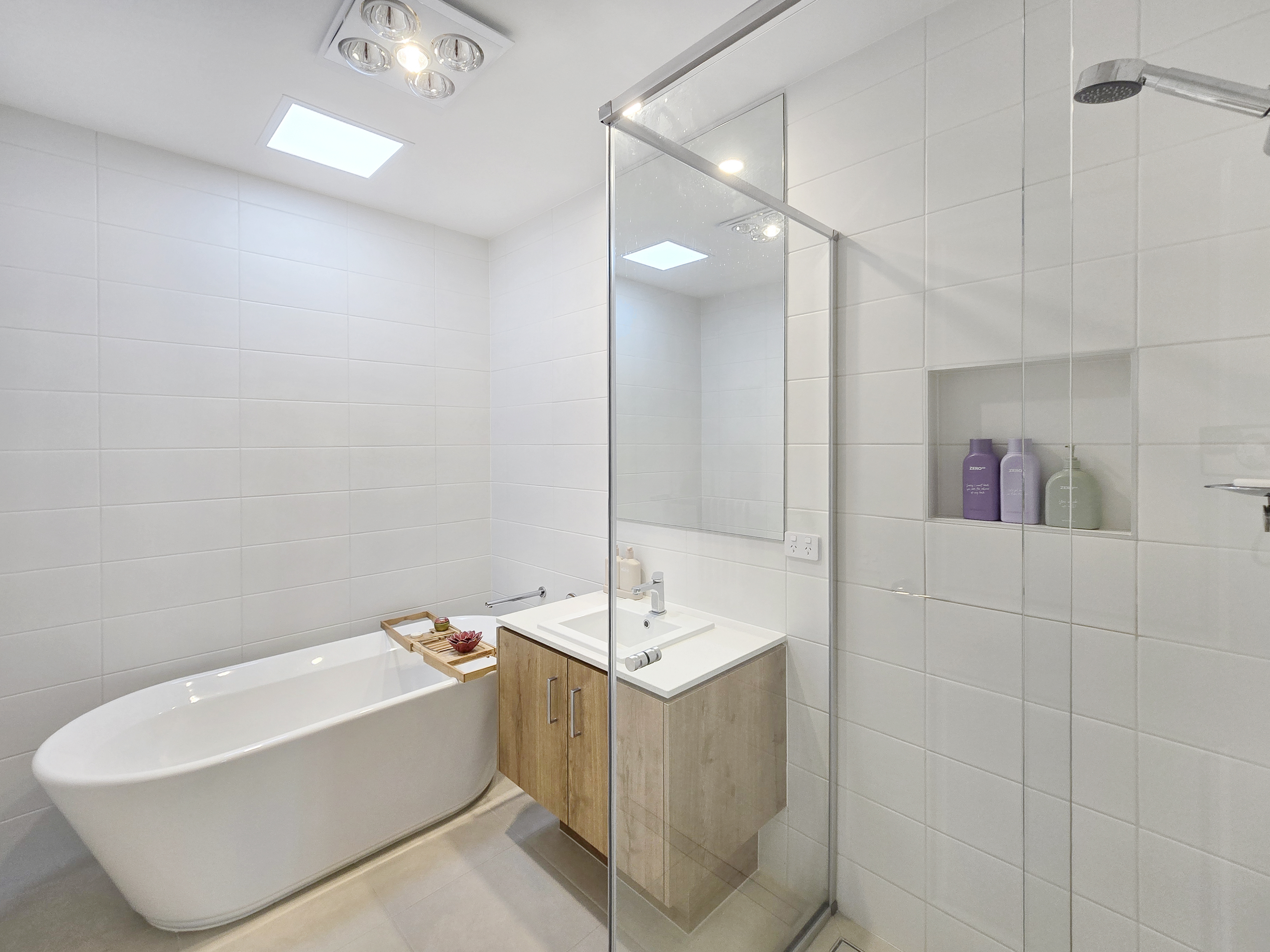– Spacious master bedroom with walk-in robe and stunning ensuite bathroom including double vanity, an oversized shower and a toilet