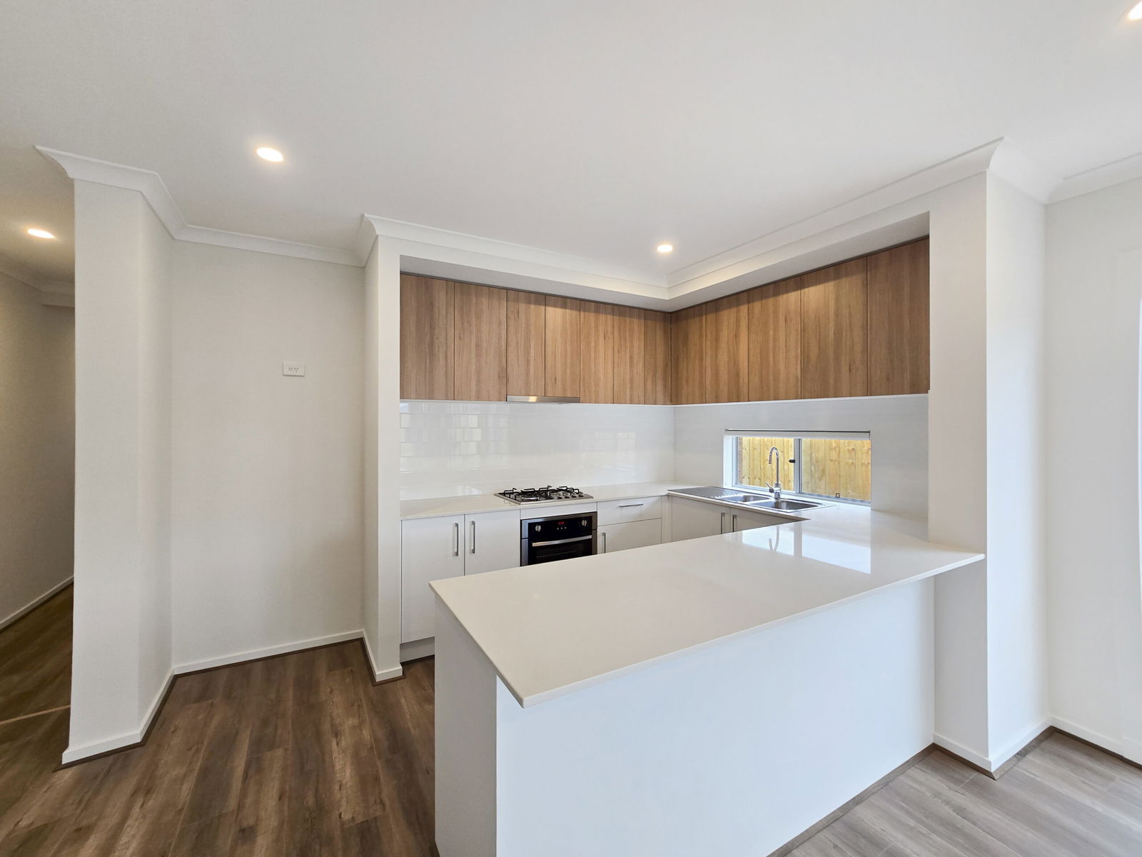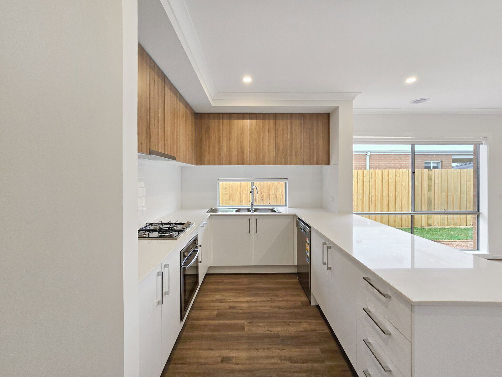 – Kitchen with a window splash back, 4 burner gas cooktop, 600mm electric oven, dishwasher, plenty of cupboards, stone benchtop and a built-in pantry