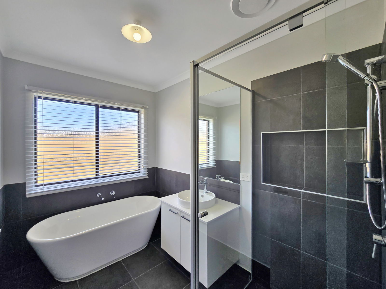 – Main bathroom with with freestanding bath, shower and vanity and a separate toilet