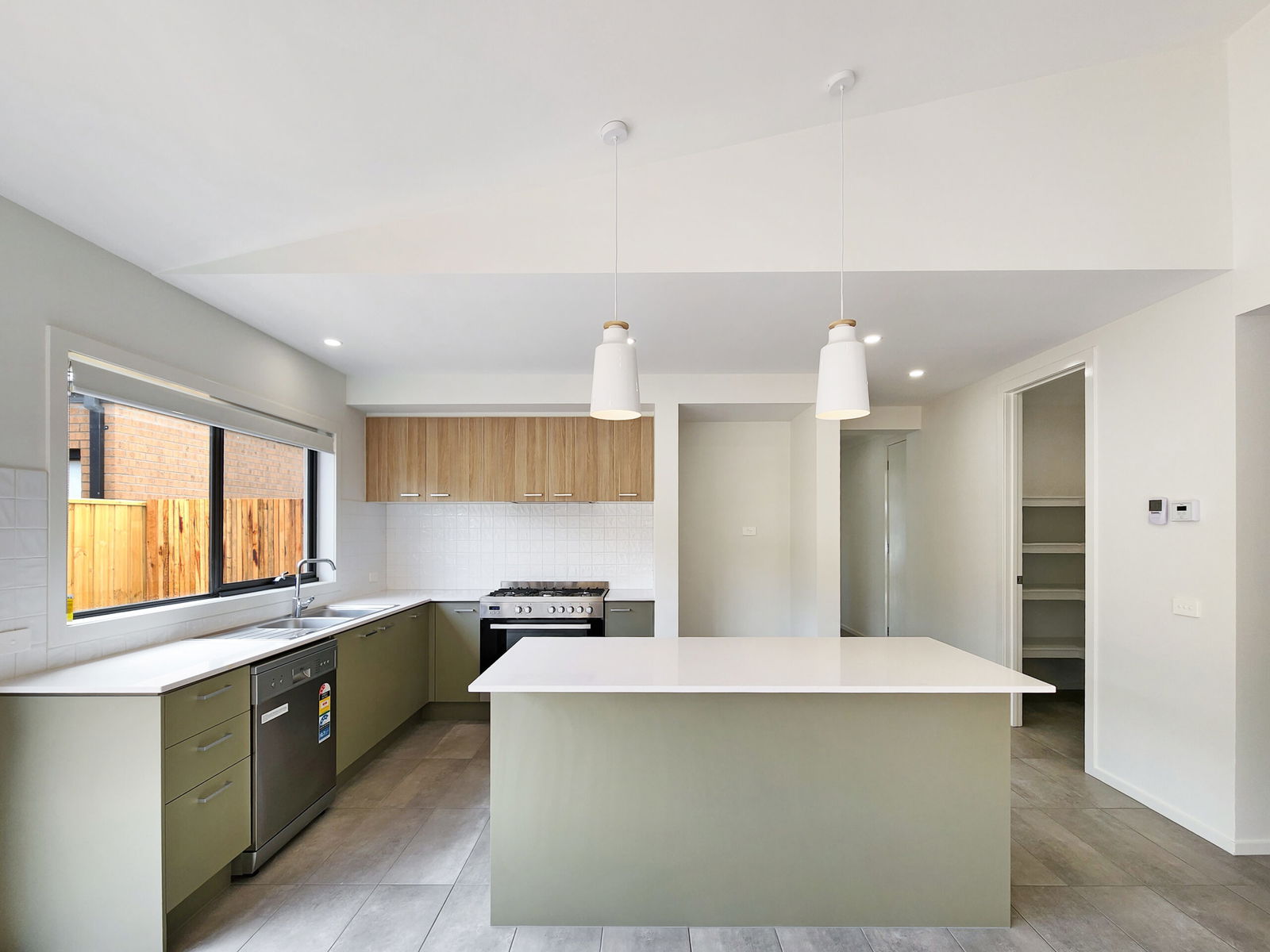 – Large kitchen with stone bench tops, pendant lighting, statement cabinetry, 5 burner gas cook-top, 900mm oven, dishwasher, large fridge space, microwave cavity and walk-in pantry.