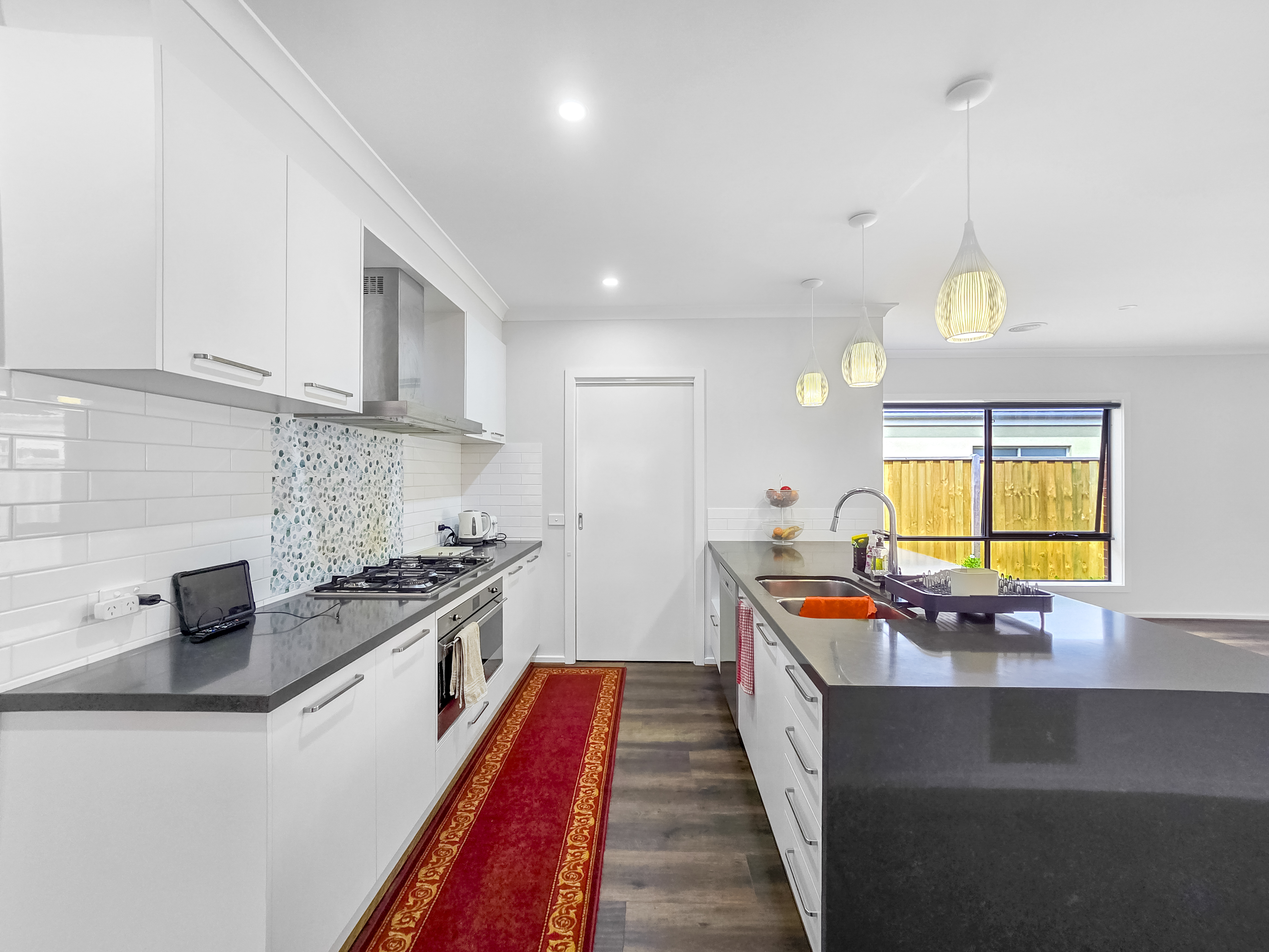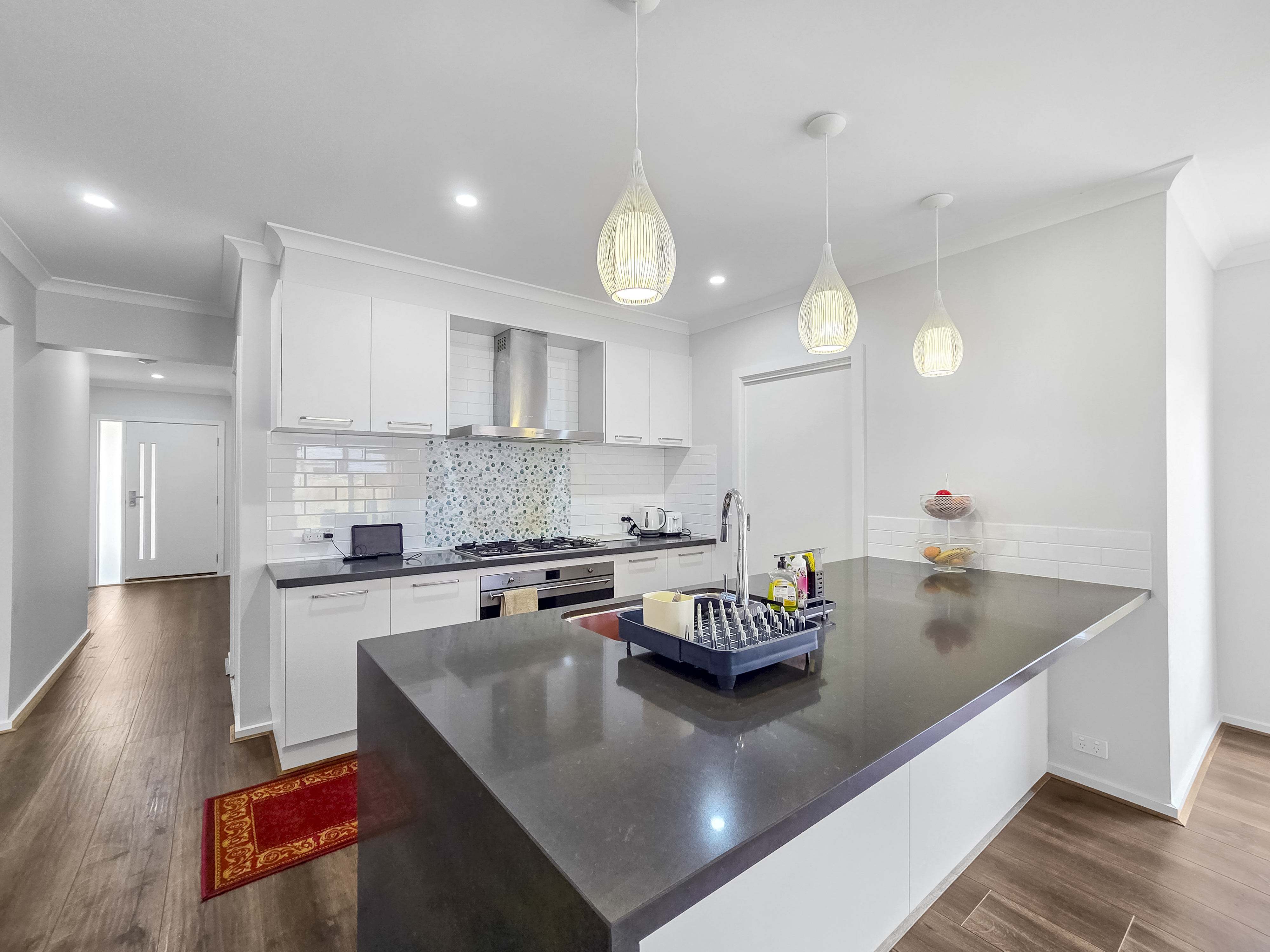 – Stunning kitchen with quality appliances including 5 burner gas cooktop, 900mm oven, expansive walk in pantry, dishwasher and plenty of storage space.