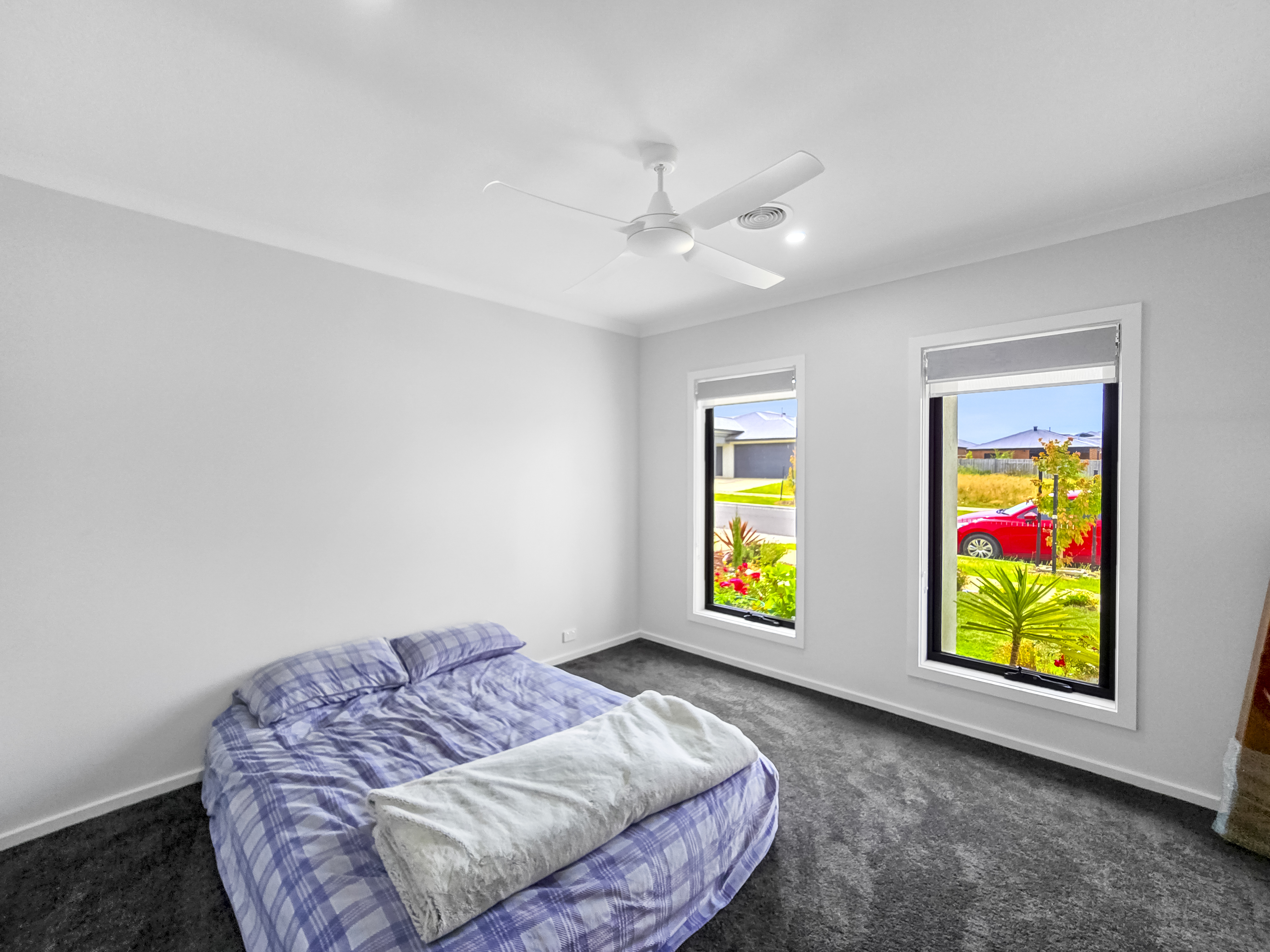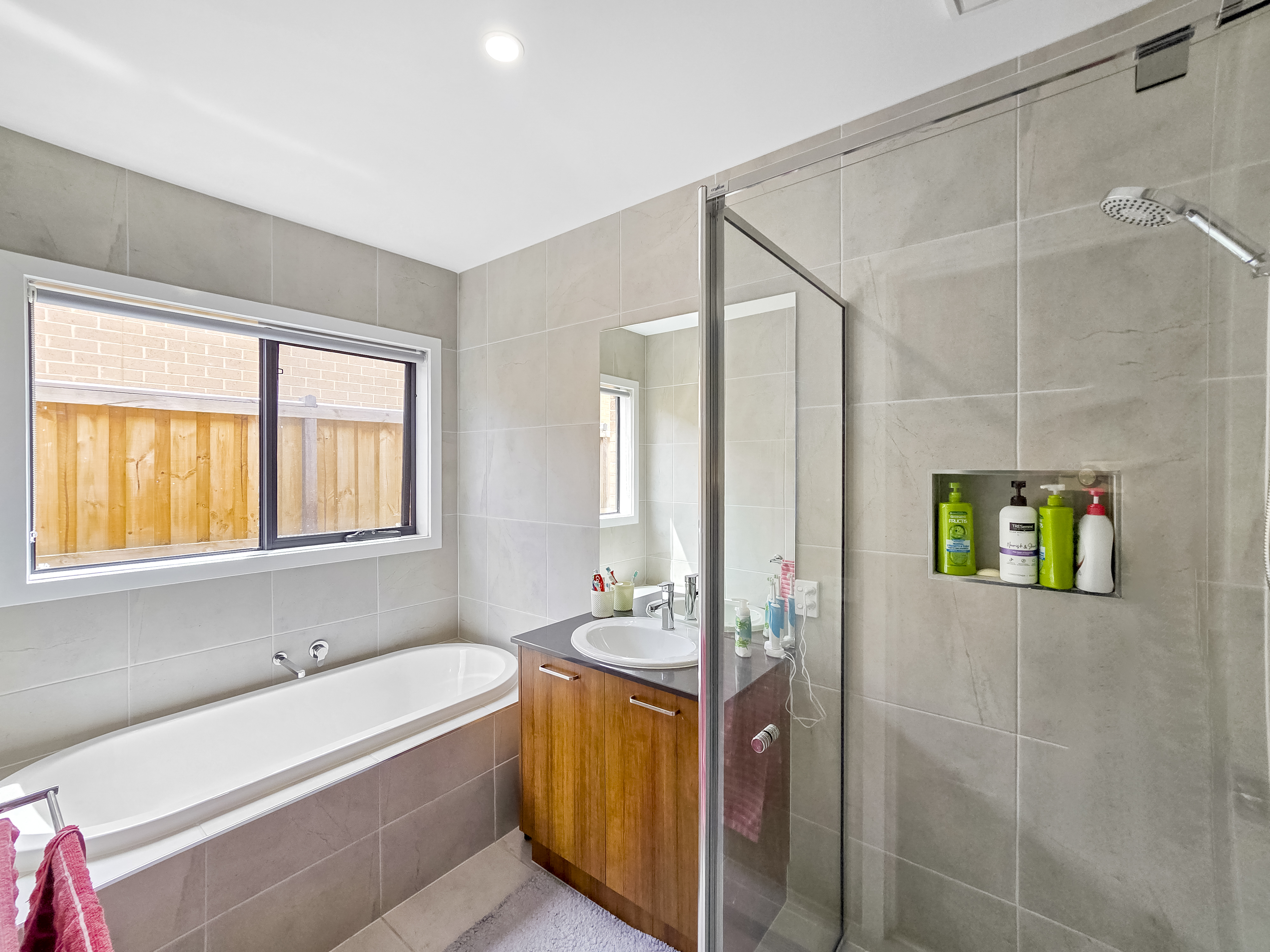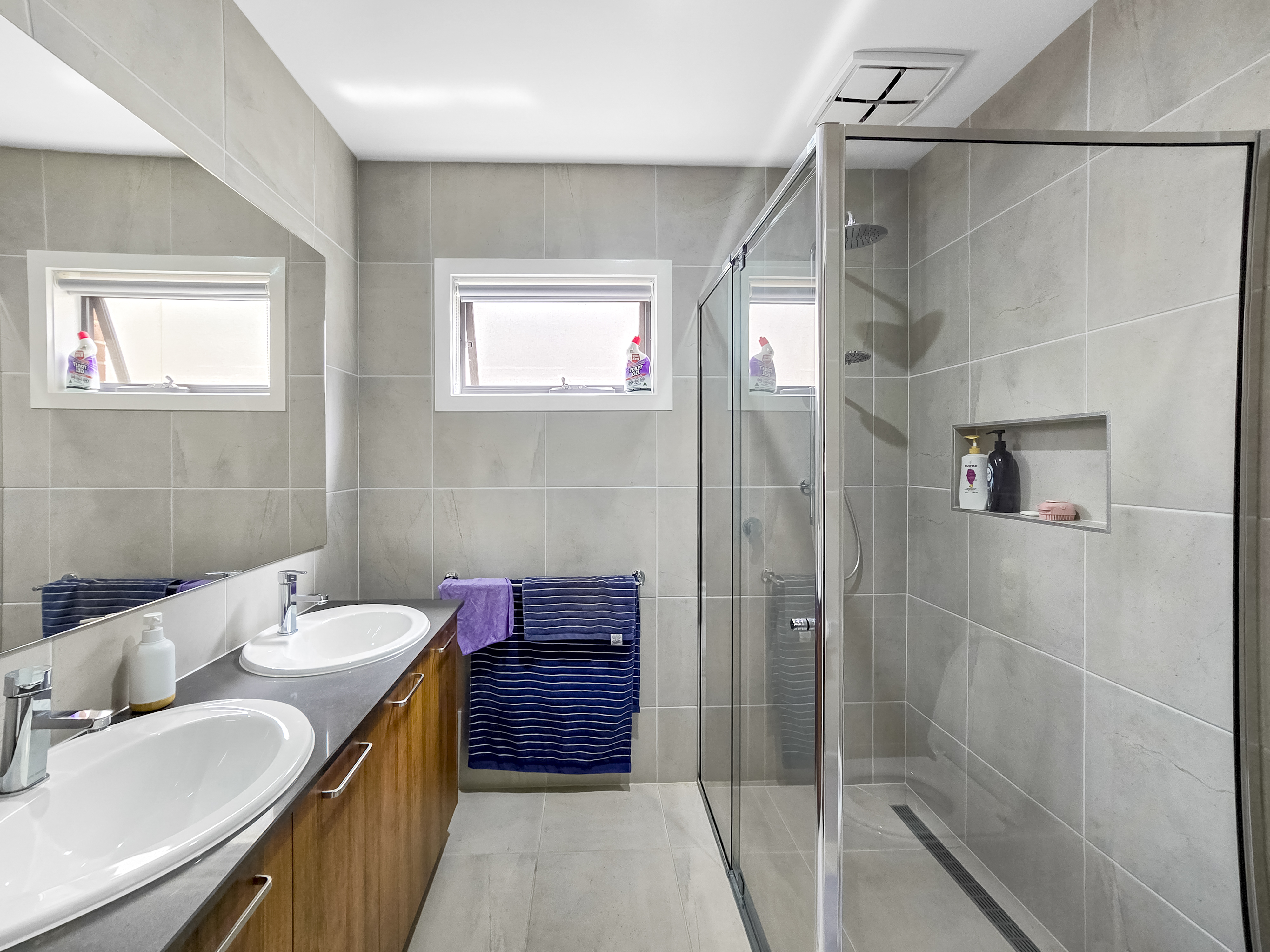 – Generous master bedroom ceiling fan, a walk in robe and ensuite bathroom featuring a large shower, double vanity and toilet.