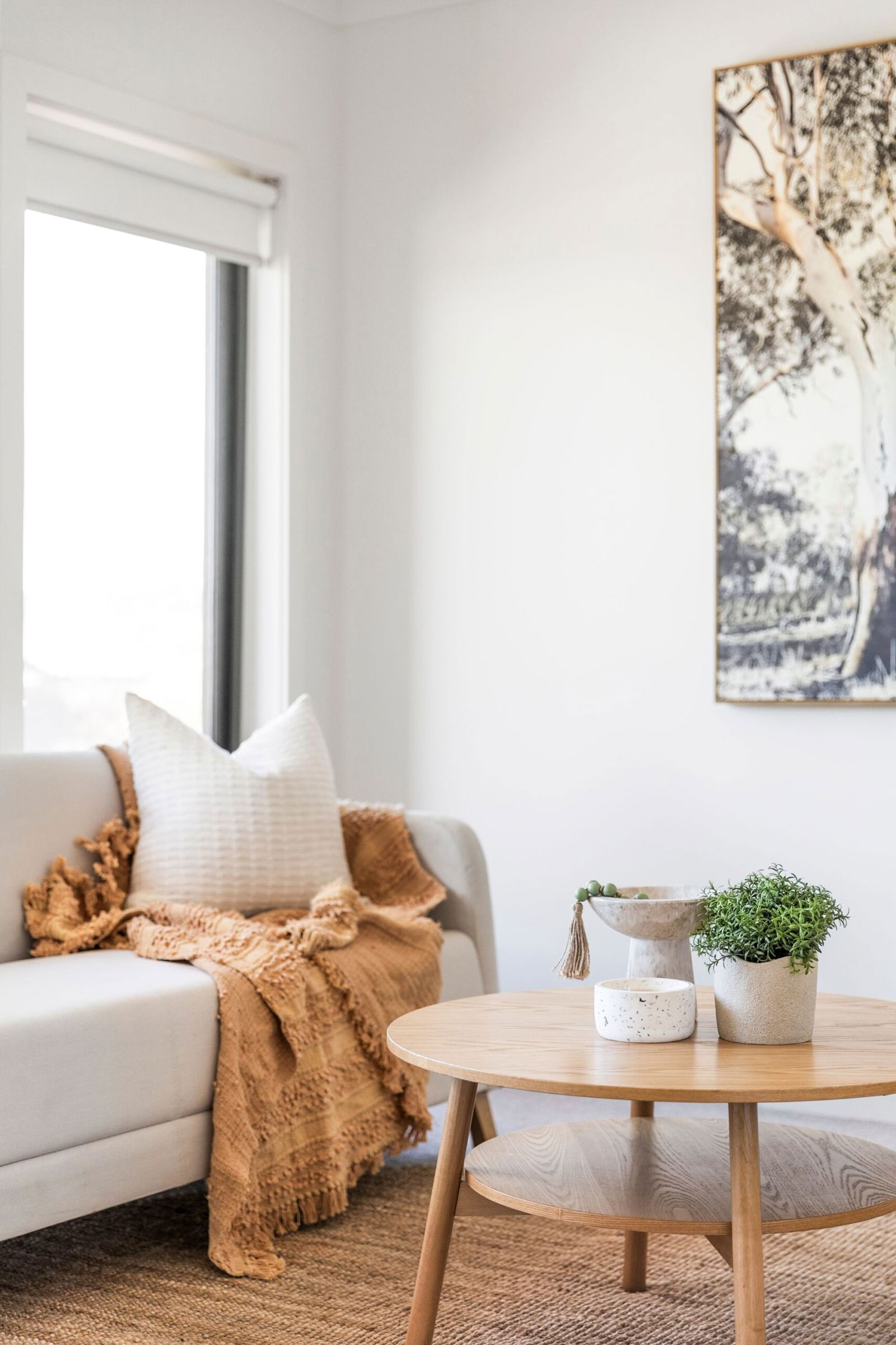 Kitchen: The central kitchen is both stylish and practical, featuring 20mm stone benchtops complemented by a tiled splashback and ample cabinetry for everyday storage. High ceilings enhance the sense of space, while timber-look flooring flows seamlessly through the area. The kitchen is equipped with a 900mm freestanding oven and stovetop with rangehood, double sink, large fridge cavity and ducted heating with split-system cooling, making it ideal for both daily living and entertaining.