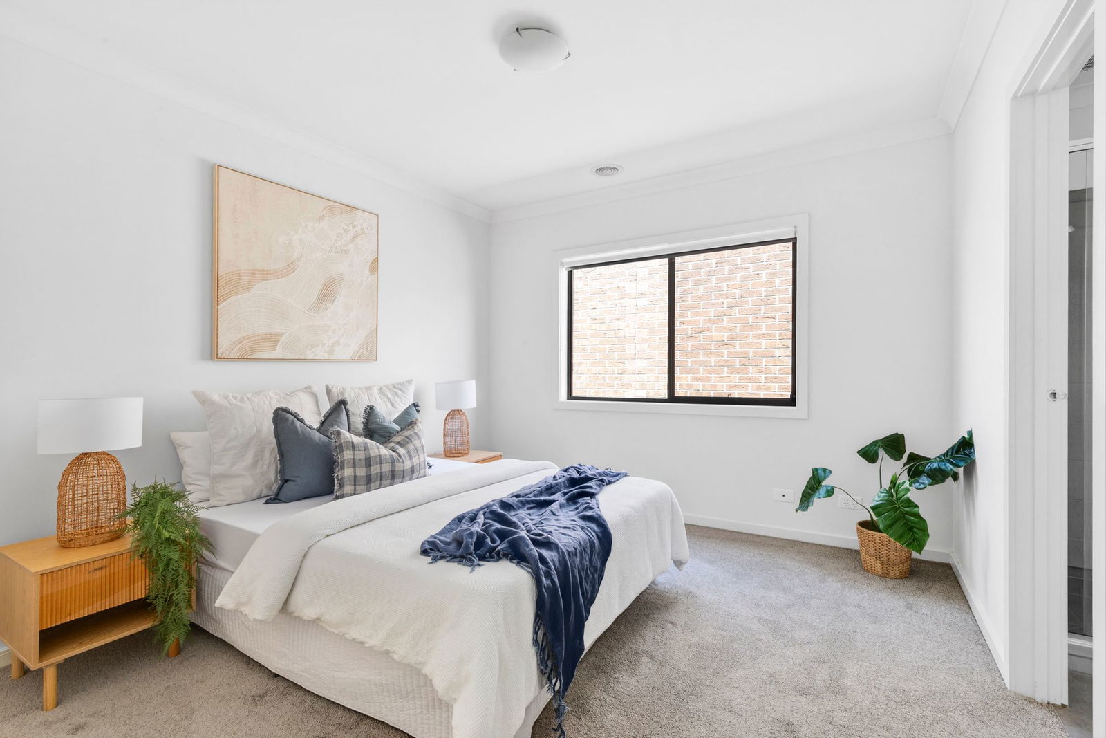 Master Suite: Centrally located within the home, the master suite is a private and well-proportioned retreat. East-facing windows capture the morning sun, while brand new carpet and ducted heating ensure comfort. The suite includes spacious walk-in robes and a stylish ensuite featuring a single basin vanity, mirrored splashback, generous shower and toilet, all finished with a modern aesthetic.