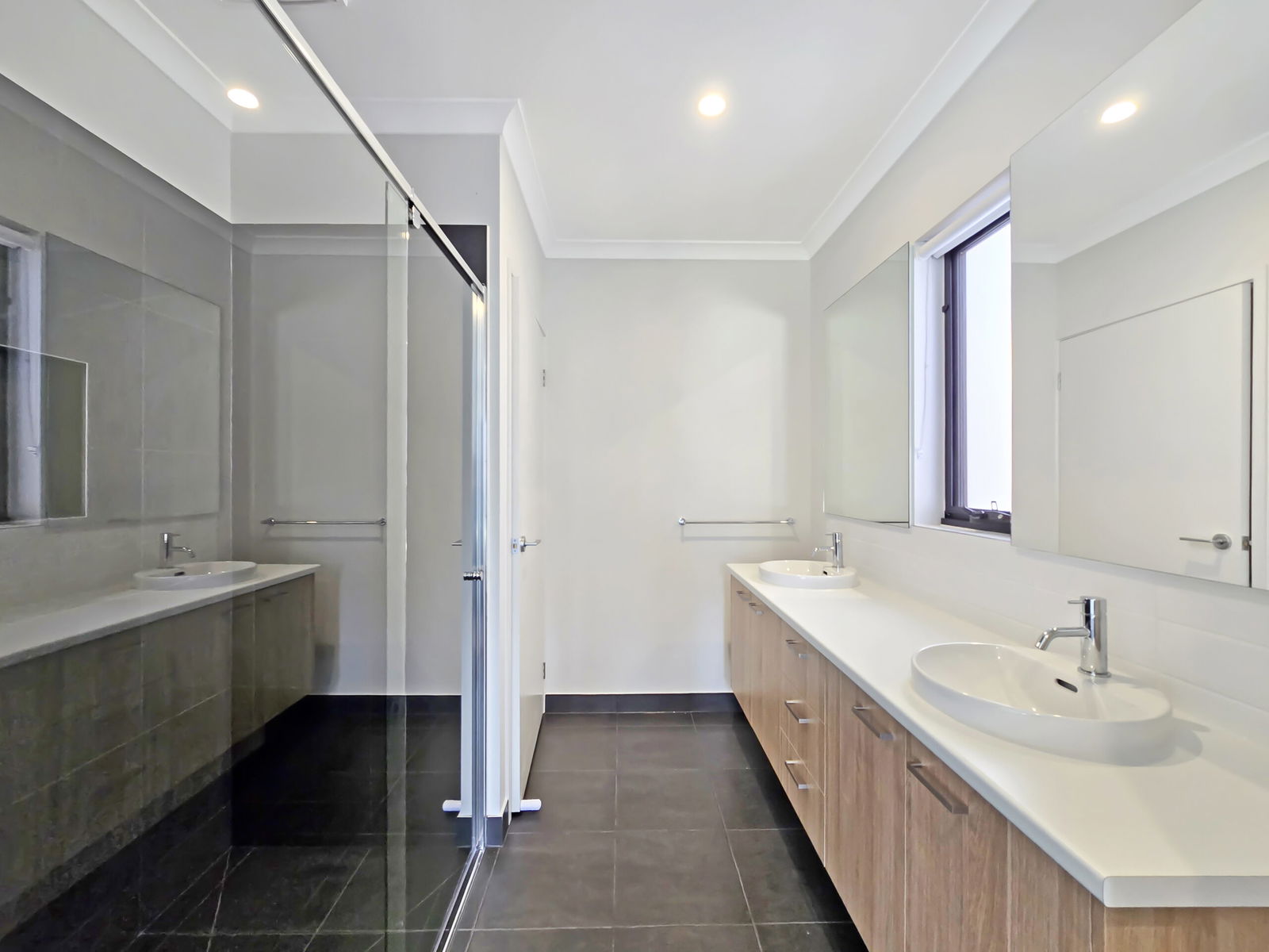 – Main bedroom with a walk-in wardrobe and ensuite bathroom including double vanity, shower and toilet
