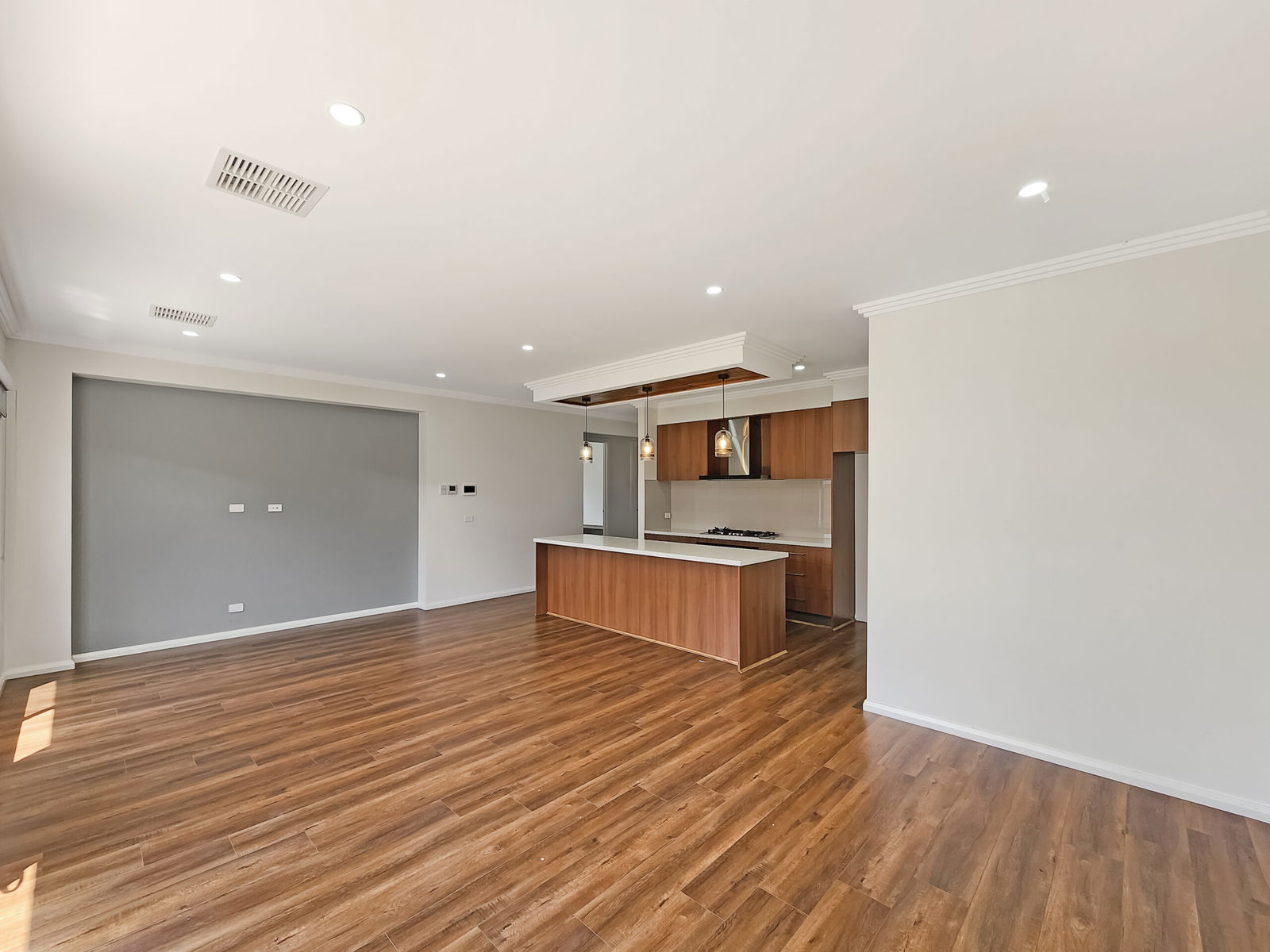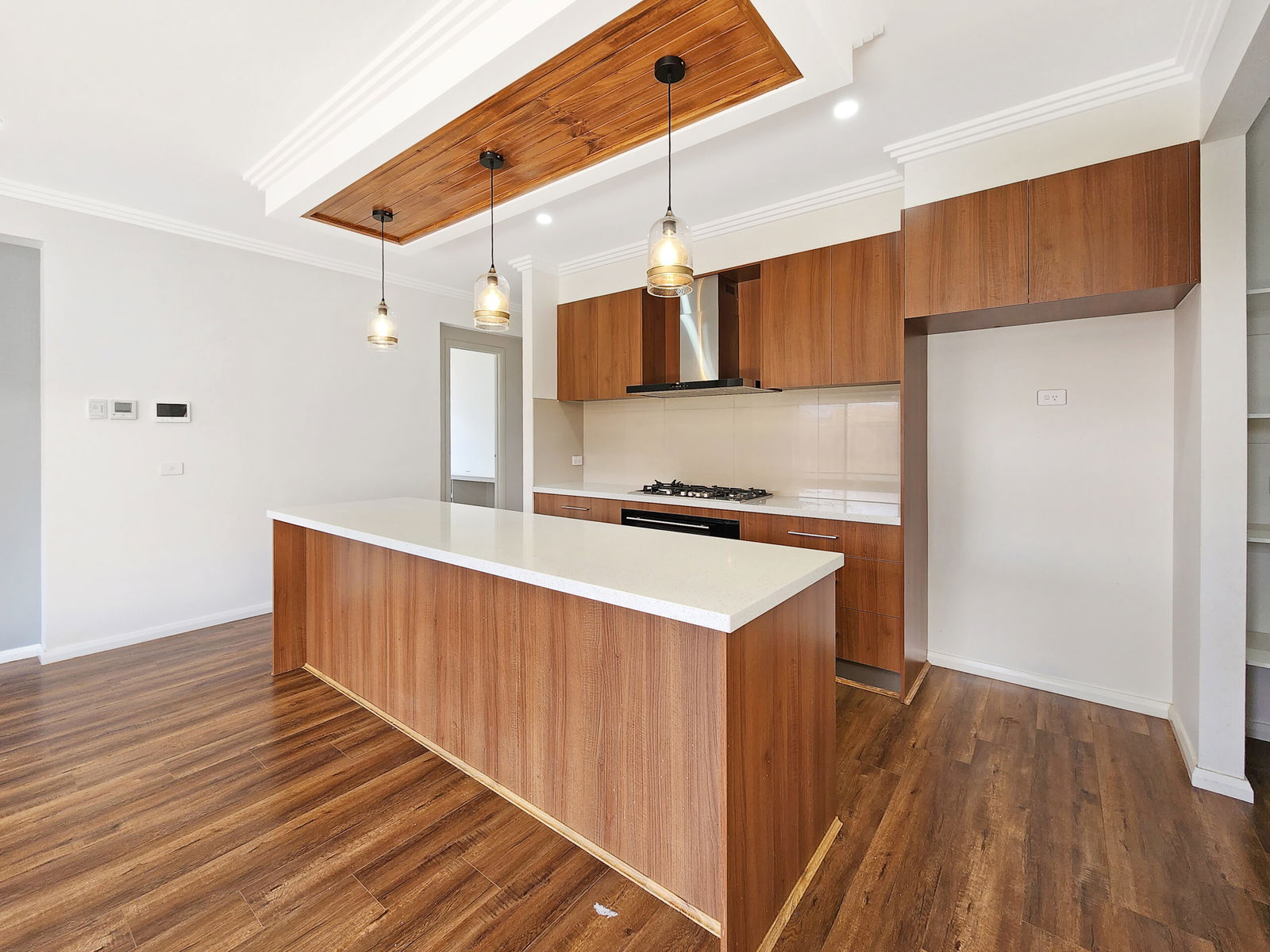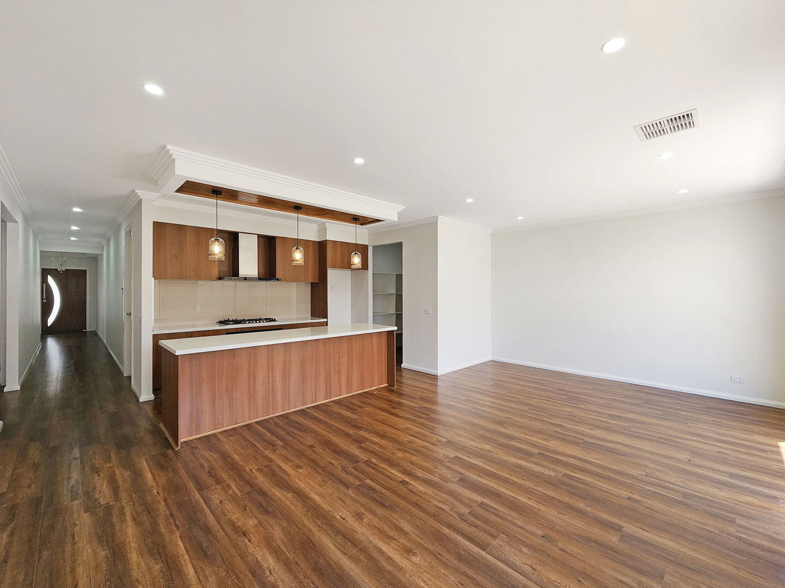 – Well equipped kitchen with pendant lights, stainless steel appliances, 5 burner gas cook top, 900mm oven, butlers pantry with a dishwasher and sink & ample cupboard space