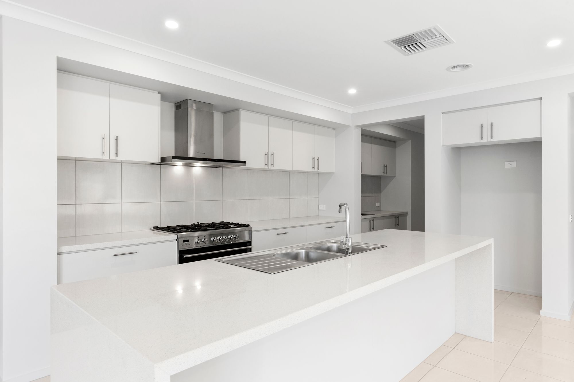 – Kitchen boasting extra large island bench, stone bench tops with waterfall island, 900mm stainless steel oven and gas cook-top, dishwasher and large walk in butlers pantry