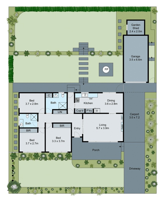 – Single carport leading into the garage for an extra car space