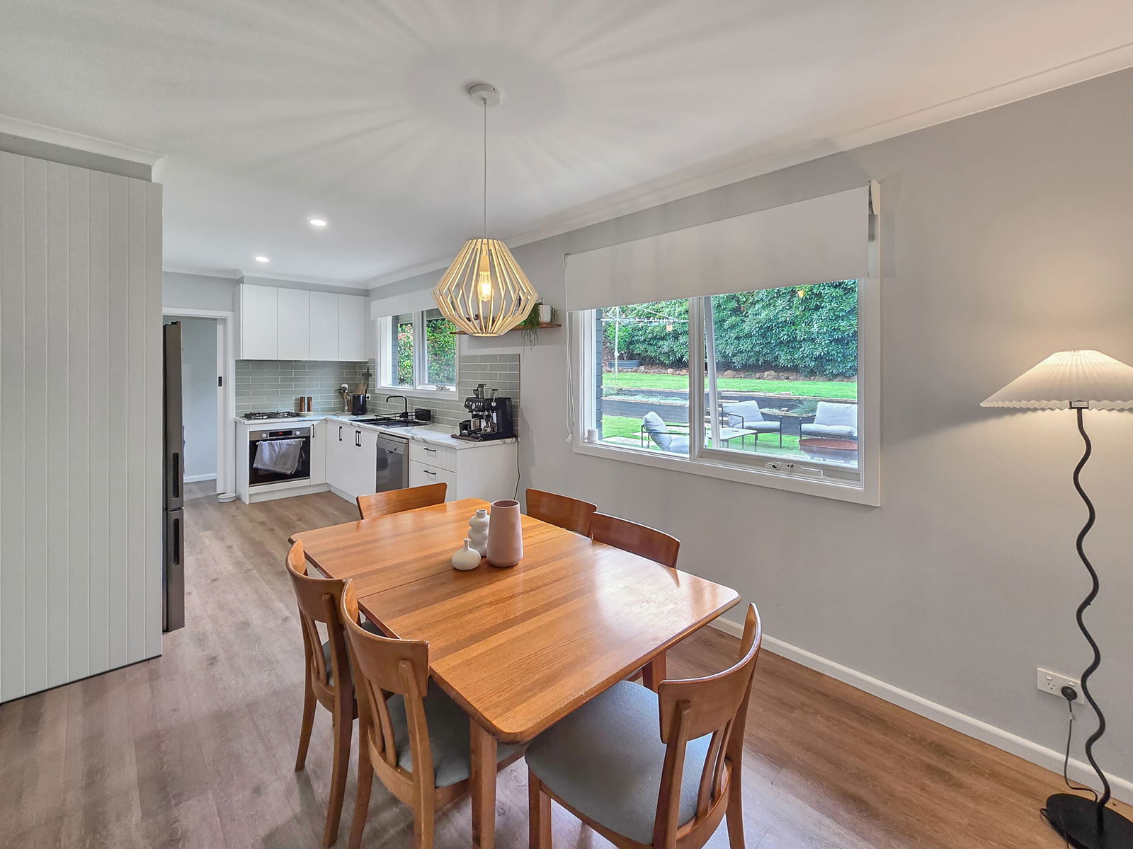 – Kitchen and dining is complete with 4 burner gas cook top, 600mm electric wall oven and dishwasher along with ample bench and cupboard space