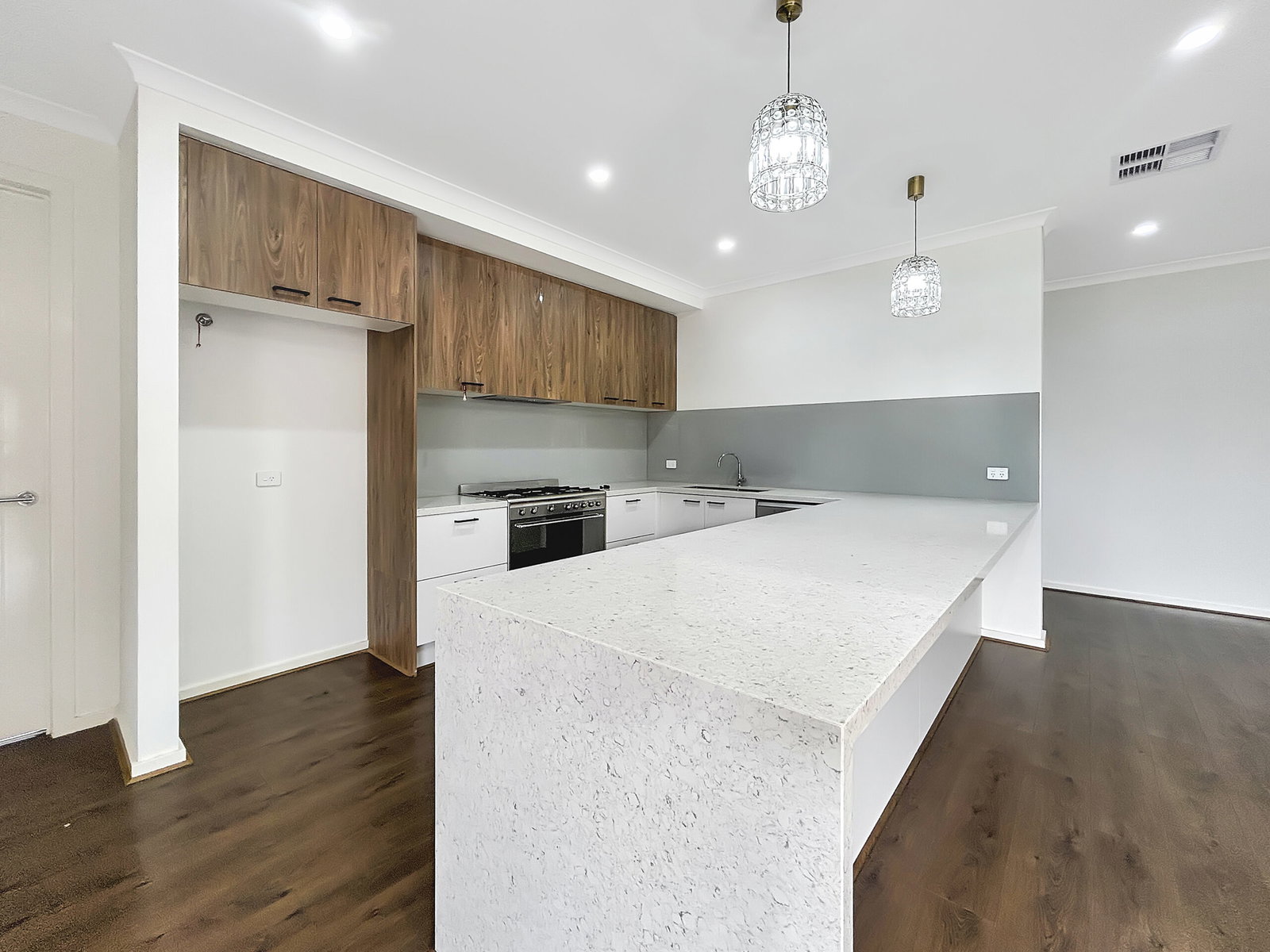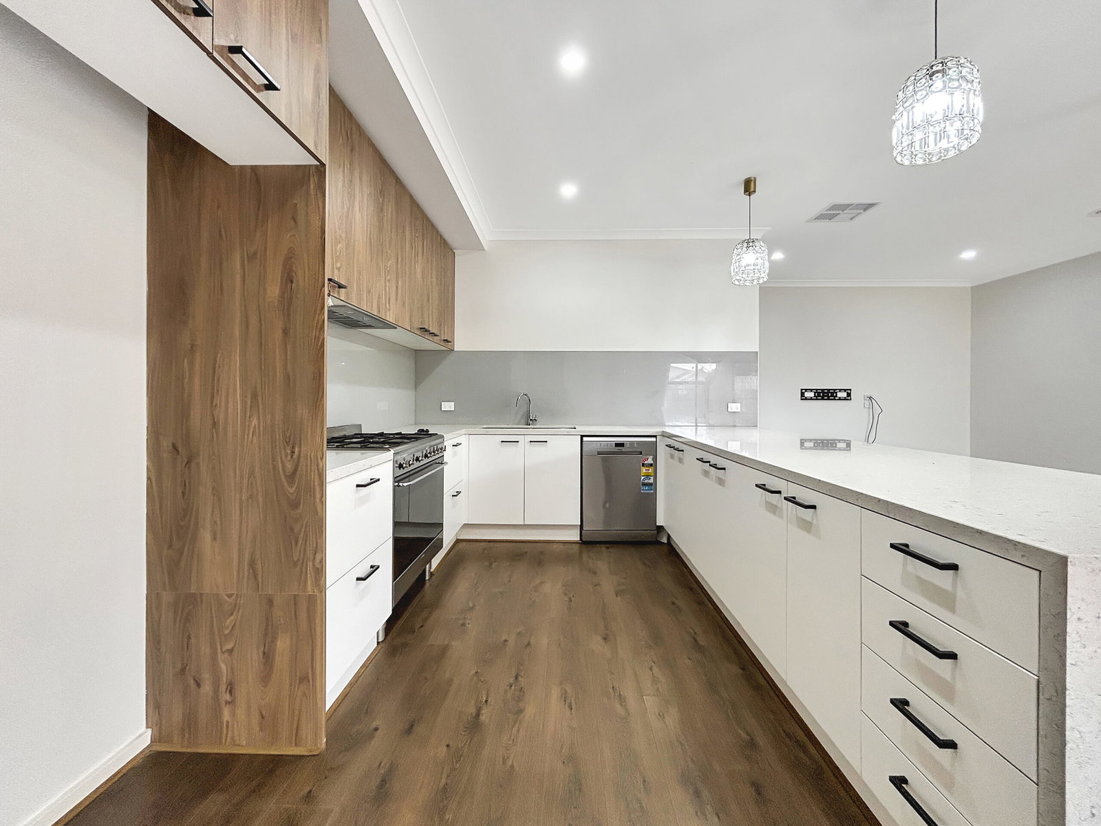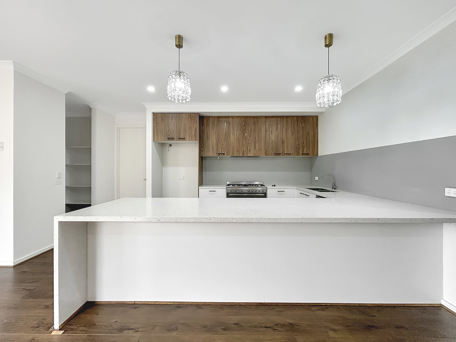 – Kitchen including beautiful upgrades such as pendant lighting, waterfall stone bench, breakfast bar, 900mm oven, 5 burner cook-top, dishwasher, plumbed fridge space, pot drawers and walk in pantry