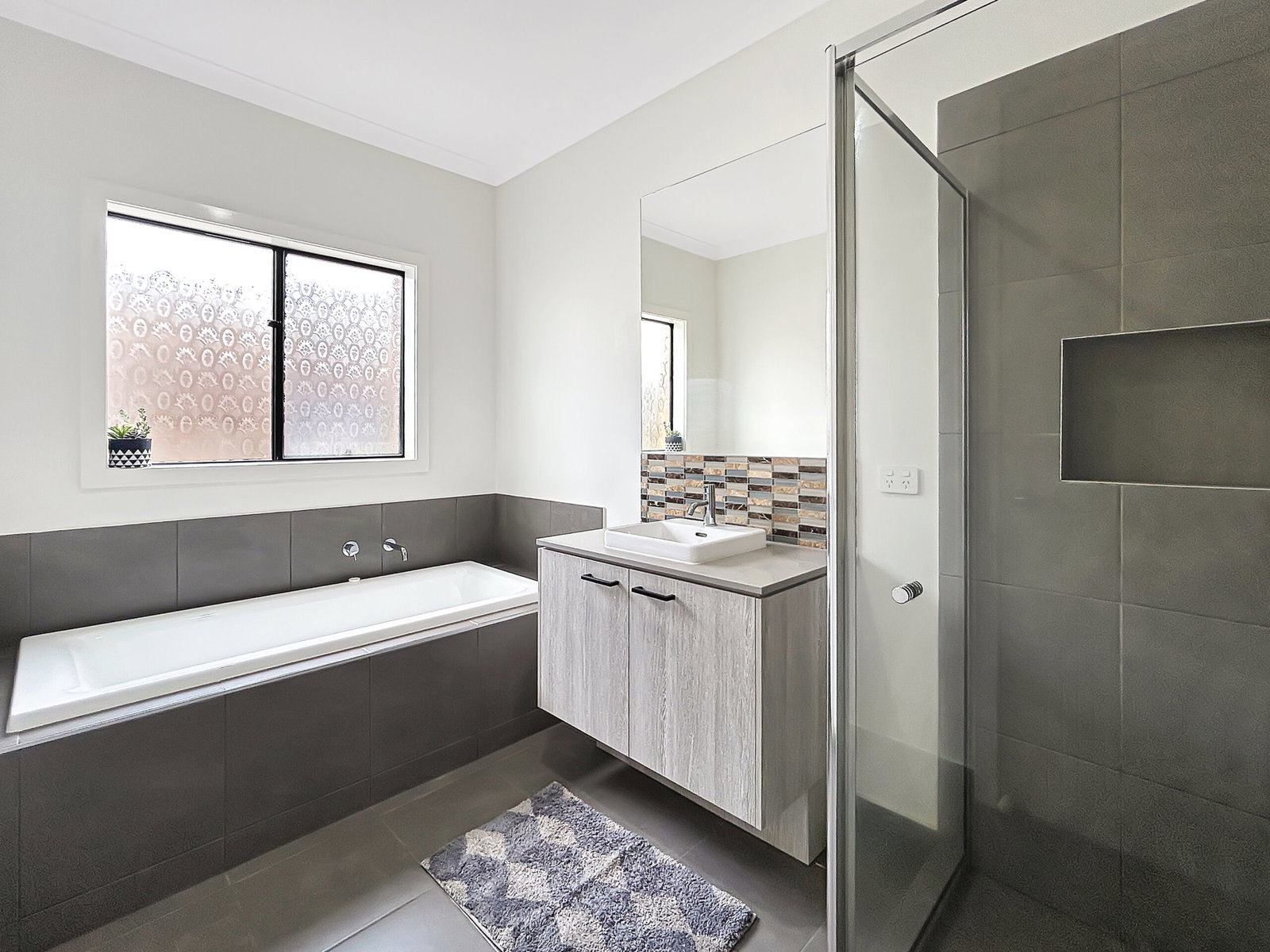 – Main bathroom with shower, built in bath, vanity and separate toilet