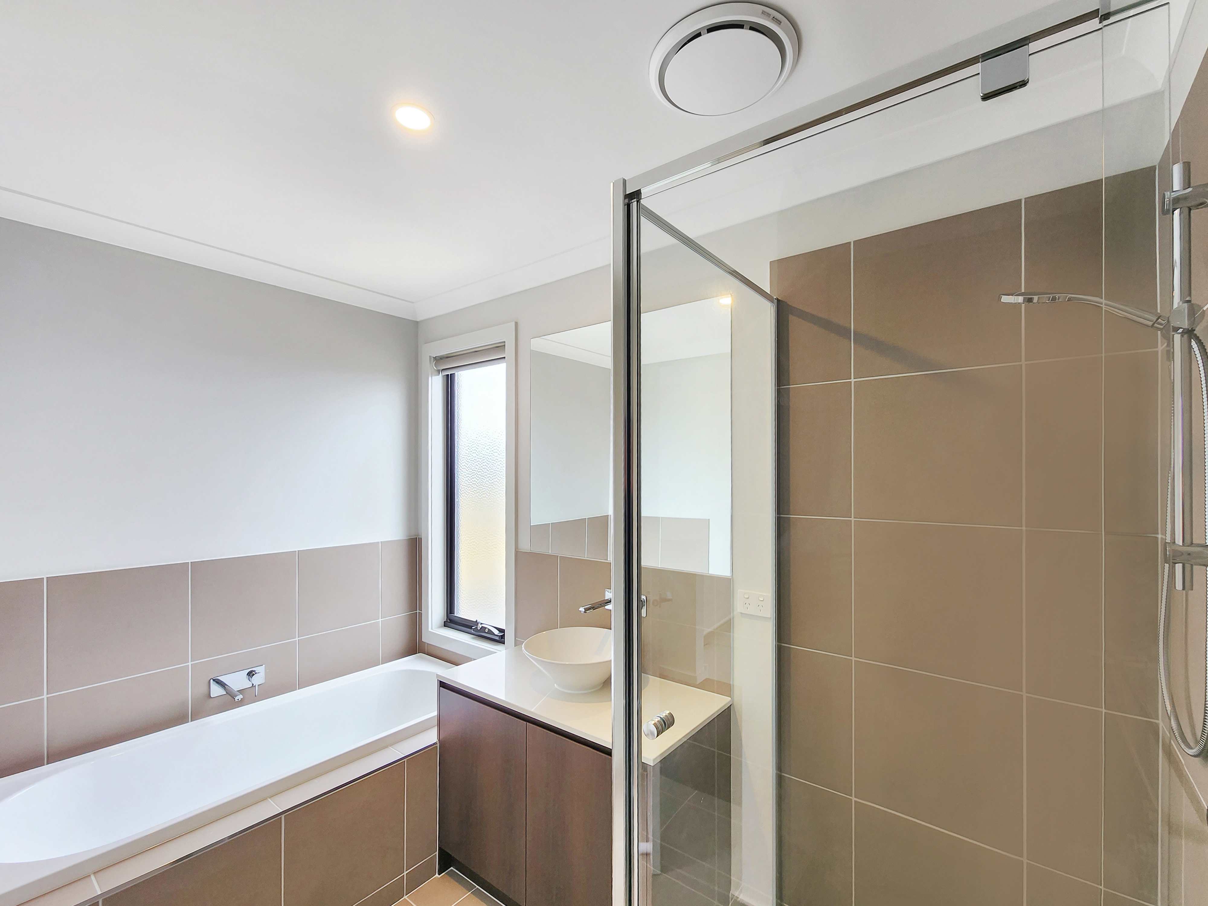 – Master bedroom upstairs with a split system unit, large walk in robe and ensuite with vanity, extra large shower and toilet