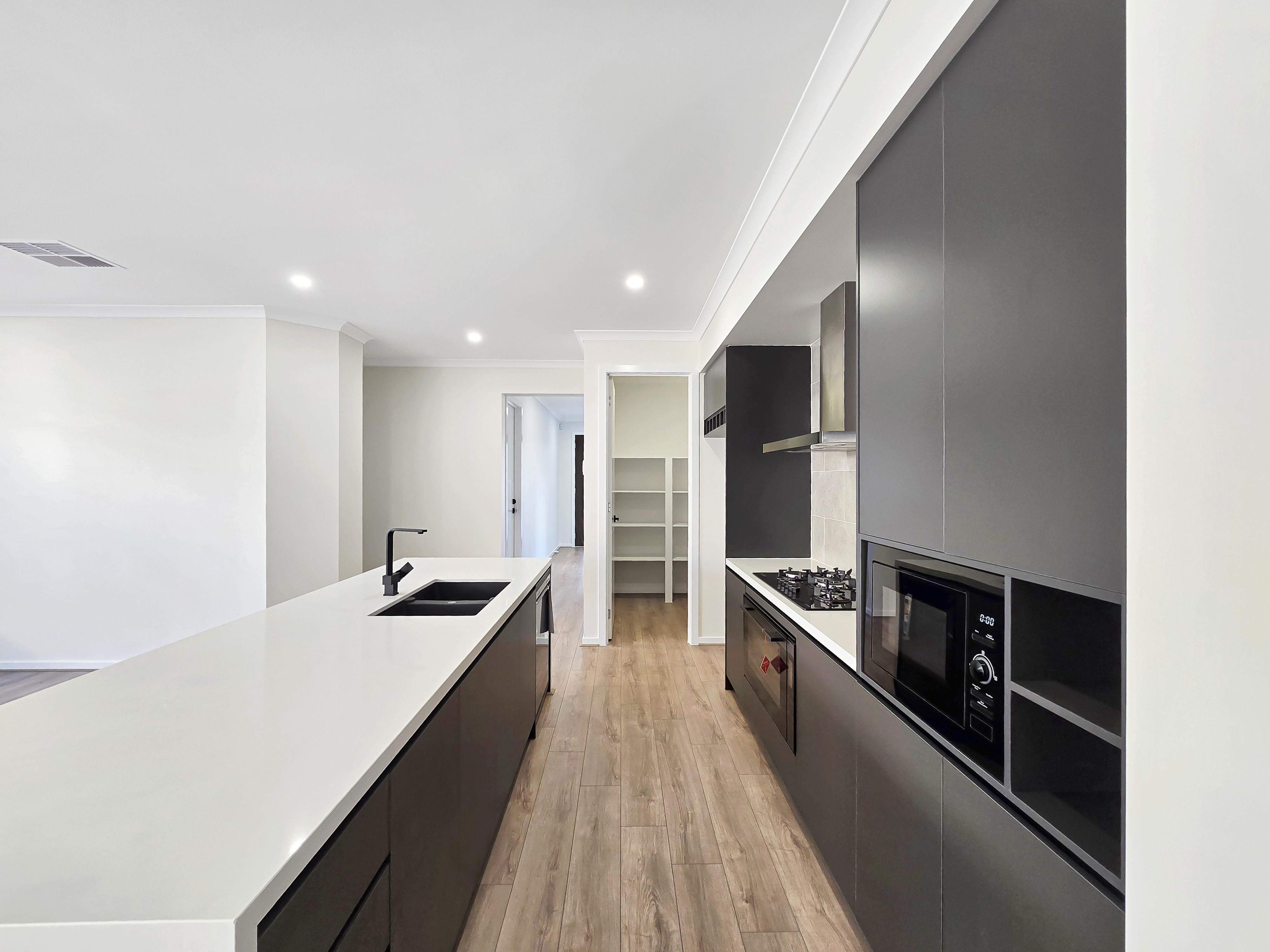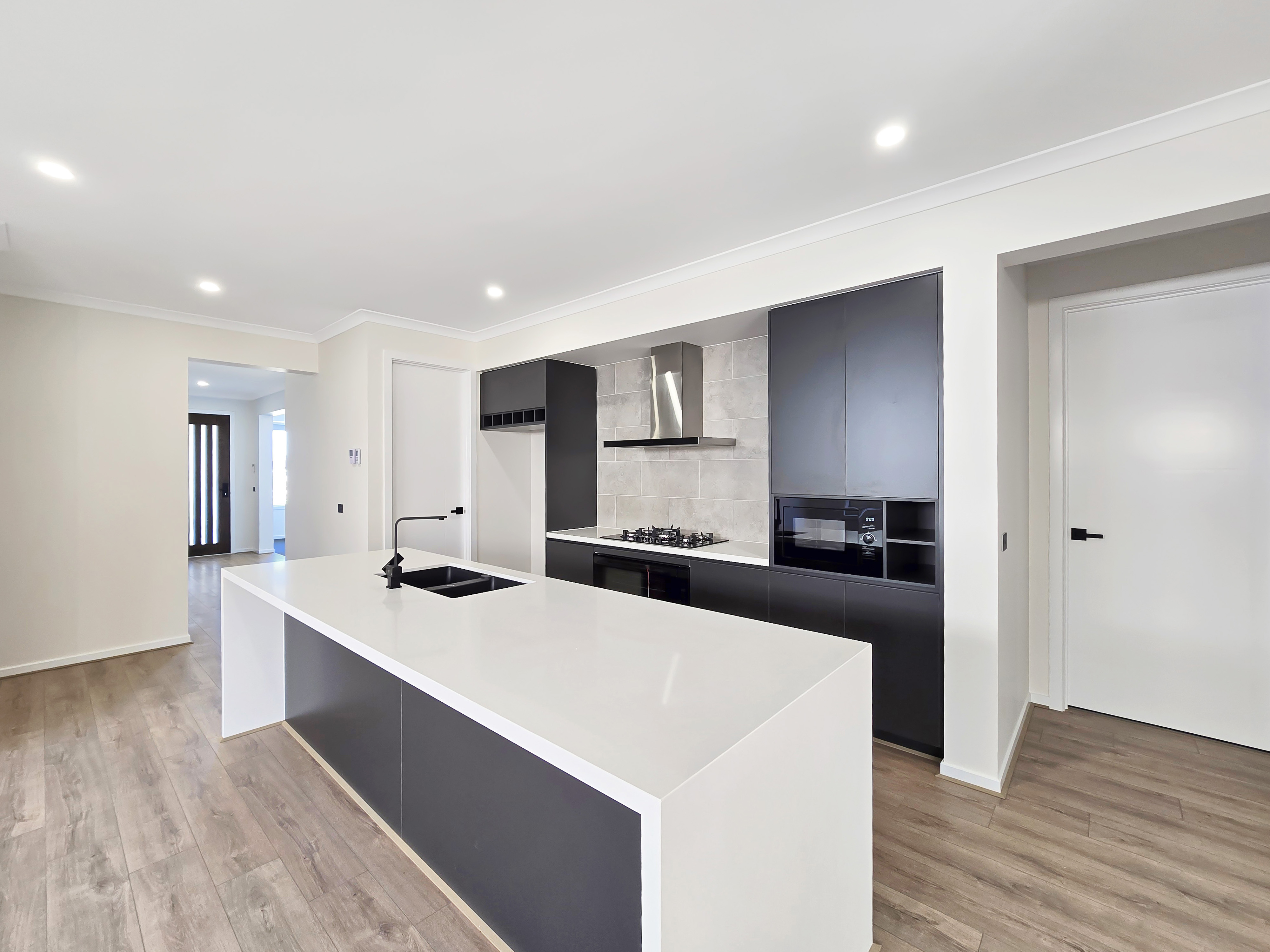 – Kitchen including 900mm electricn oven, 5 burner gas cooktop, dishwasher, built-in microwave, tiled splashback, plenty of cupboards, and a walk-in pantry