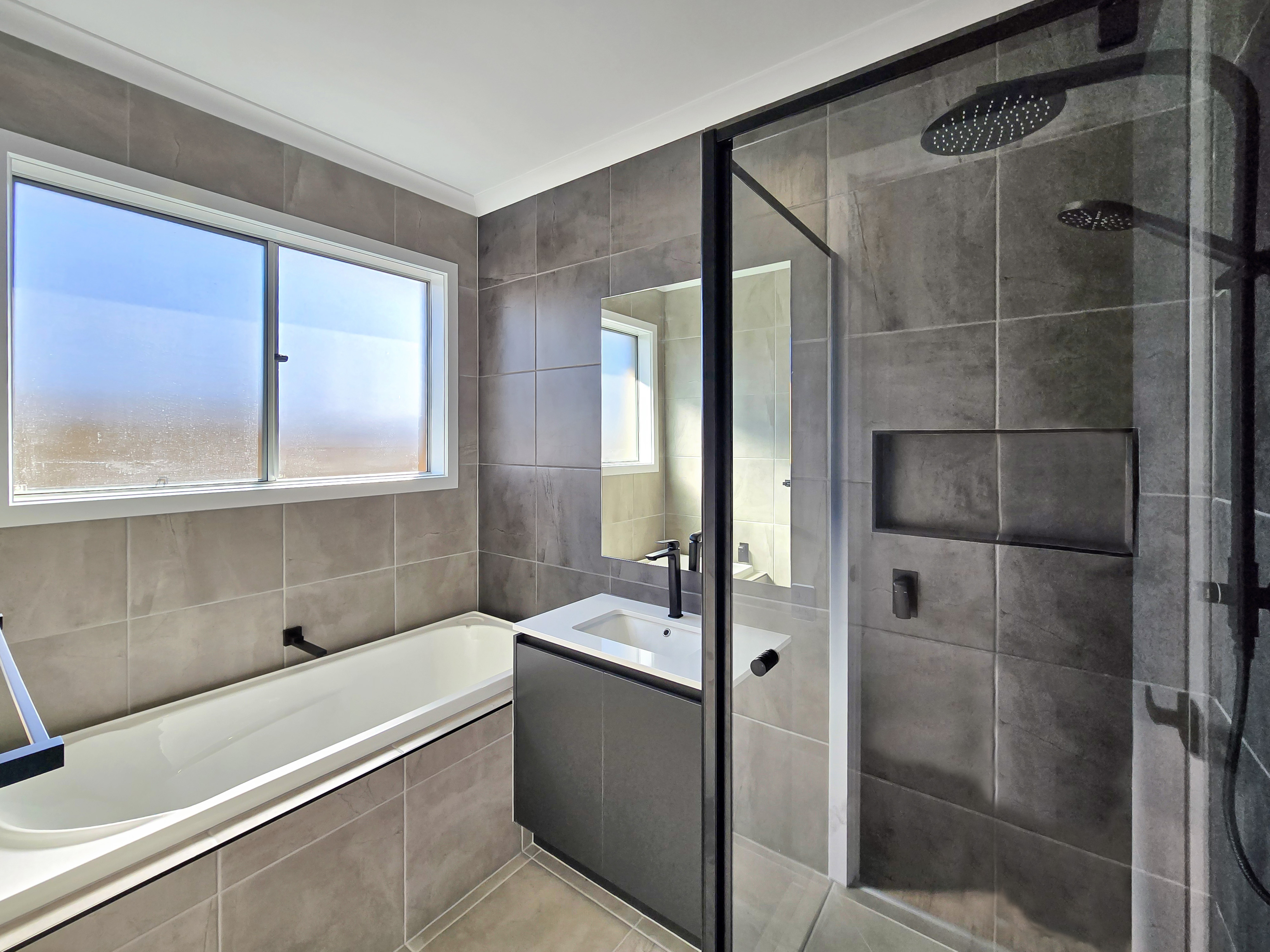 – A generous master bedroom with a walk in robe and ensuite with floor-to-ceiling tiled, double vanity, oversized shower and toilet