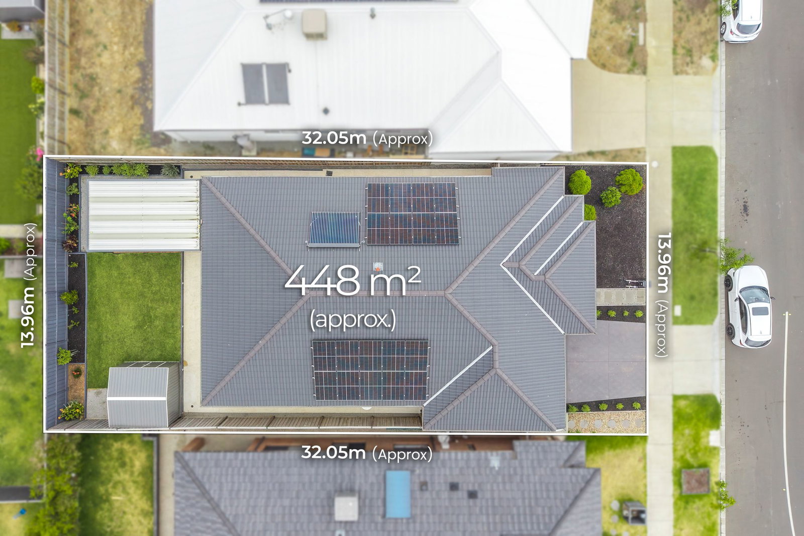 Outdoor: sliding glass doors leading to large decked under cover alfresco, fully landscaped outdoor area with garden beds, well-maintained grass, crushed rock and concrete surrounds, garden shed, landscaped front yard, internal and external garage access, concrete driveway