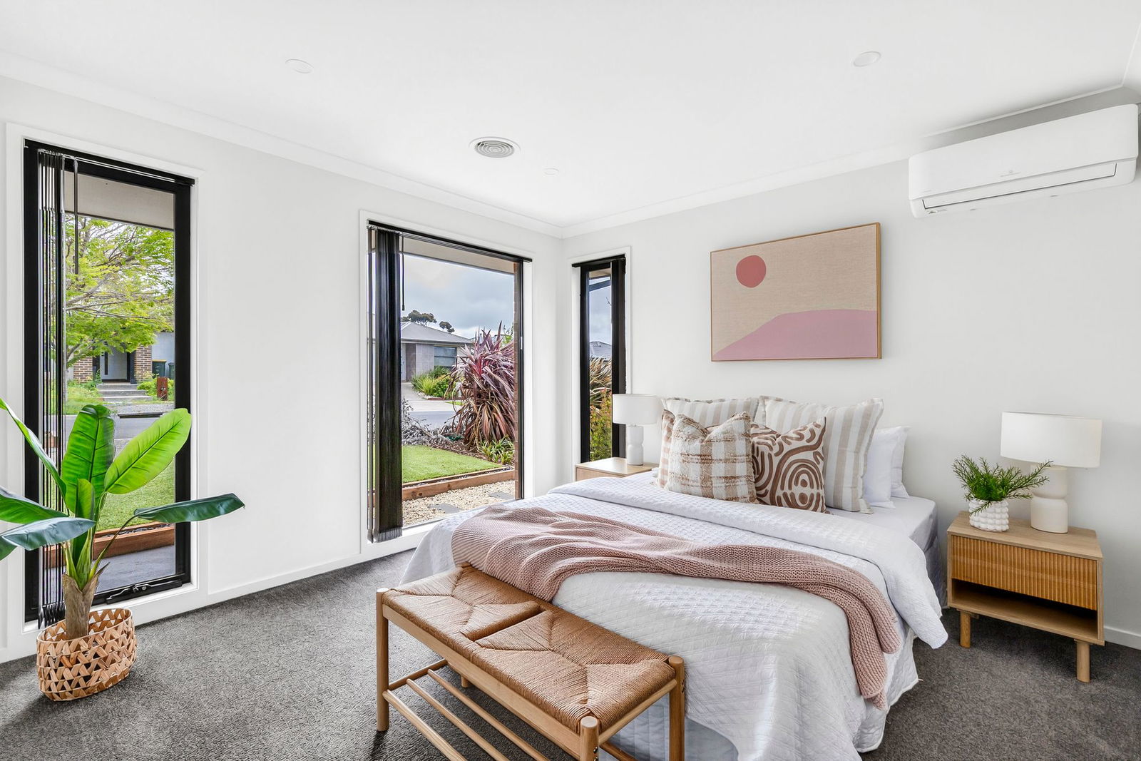 Master Suite: A true retreat for the head of the home, the master suite showcases North-facing windows, soft carpet underfoot, and split-system cooling with ducted heating for total comfort. The walk-in robe provides ample storage, while the stylish ensuite impresses with a dual basin vanity, wide mirror splashback, large shower with niche, and a wall-mounted showerhead.