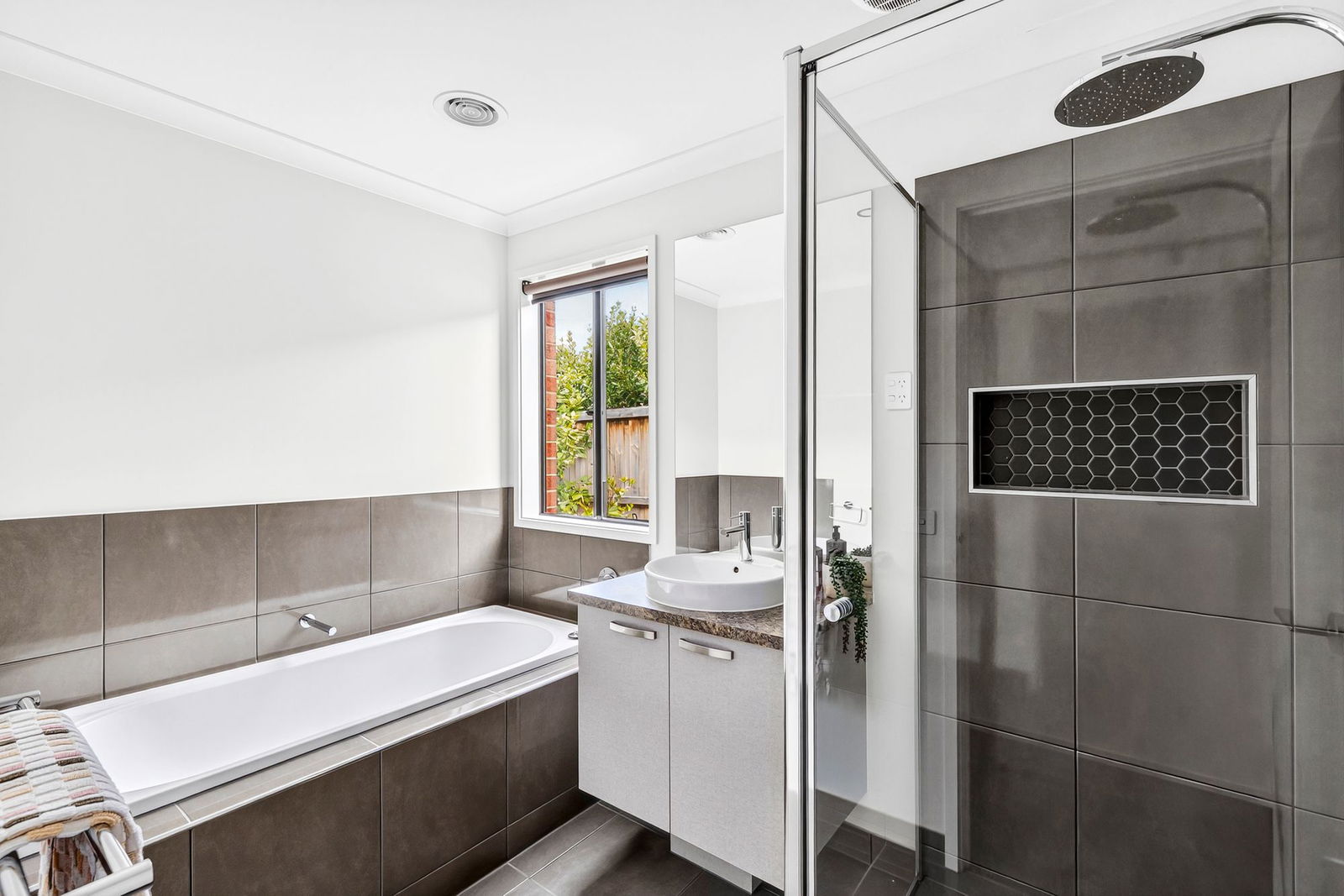 Additional Bathrooms: The main bathroom is impresses with a raised bath, single vanity with cabinetry, mirrored splashback, and shower with niche and wall-mounted showerhead. A separate toilet adds practicality for busy households.