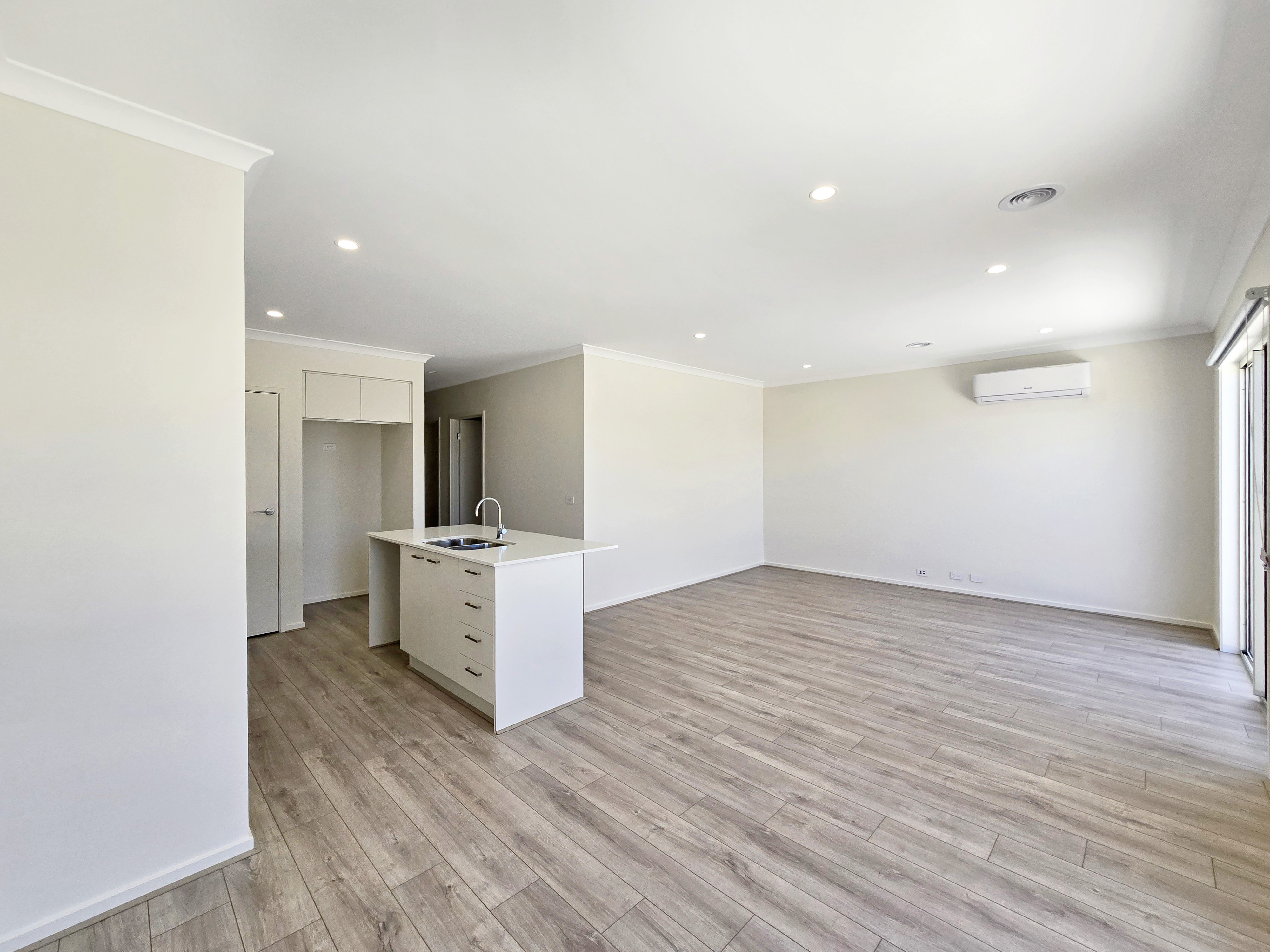 – Expansive open plan kitchen, dining and living, with a split system, this space is filled with natural light and also has a glass sliding door and a flyscreen to the backyard