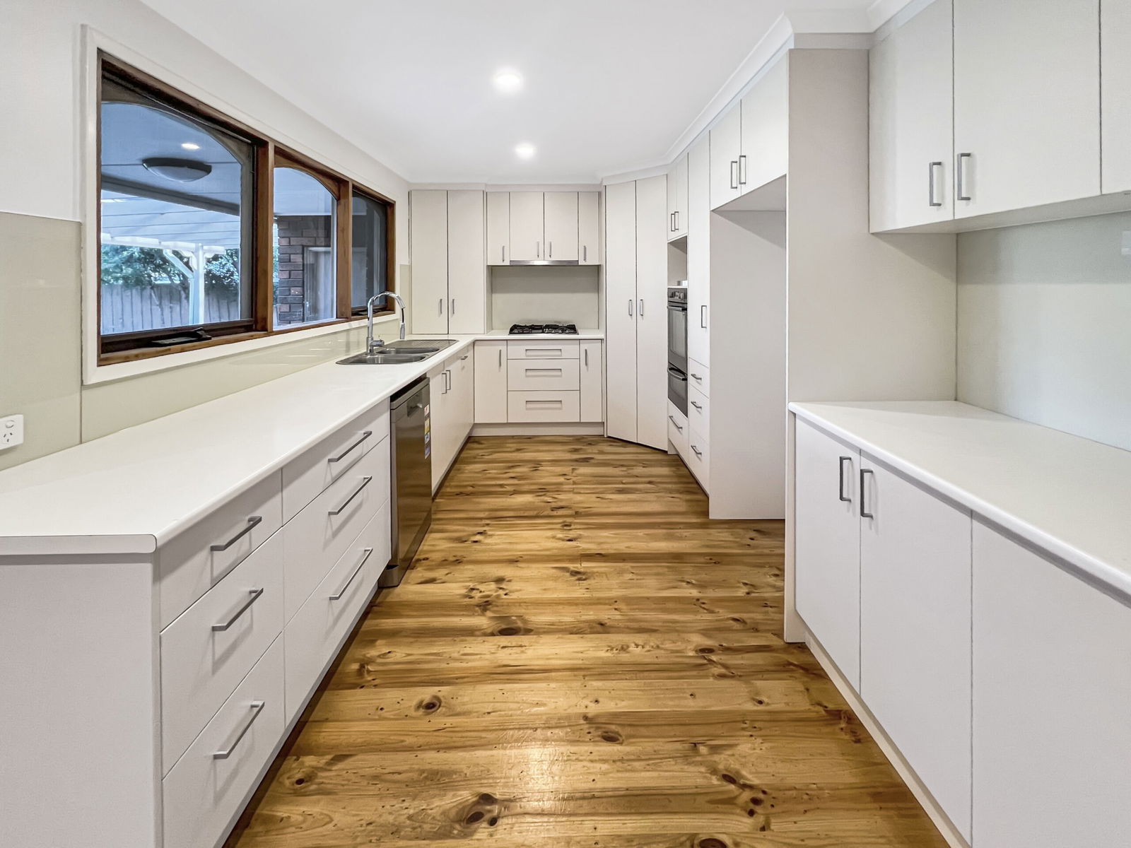 – Central family hub with kitchen, dining and living with split system and large sliding doors onto the backyard