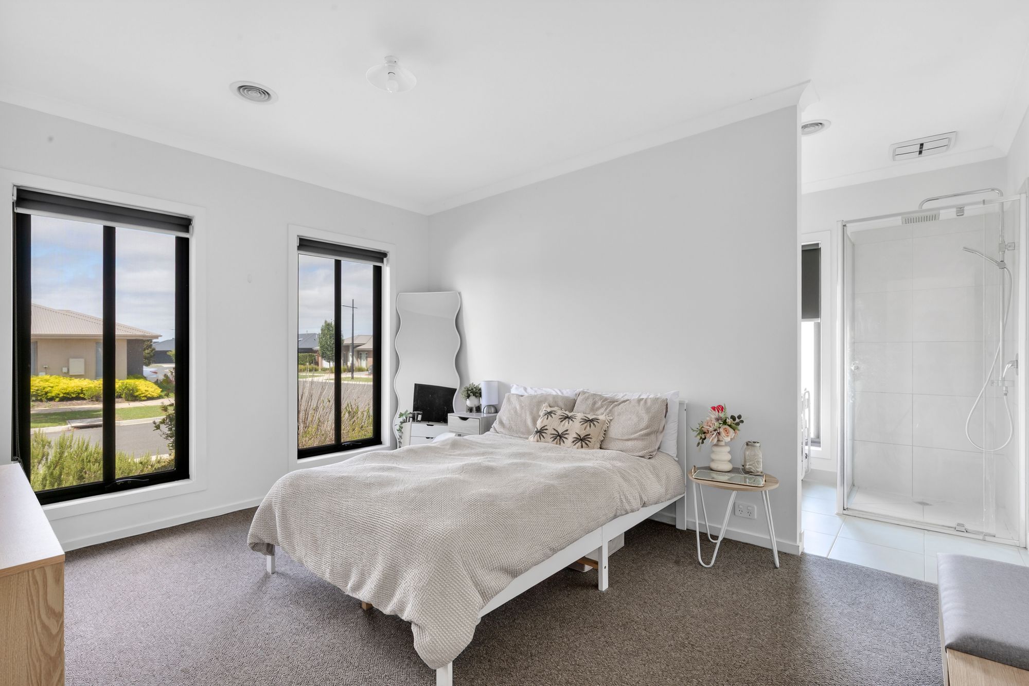Privately positioned at the front of the home, the master suite is a true sanctuary. Soft carpet underfoot and ducted heating ensure year-round comfort, while a spacious walk-in robe provides excellent storage. The stylish ensuite features a single vanity with mirrored splashback, a shower with both wall-mounted and handheld showerheads, and a private toilet, creating a refined and functional space to unwind.