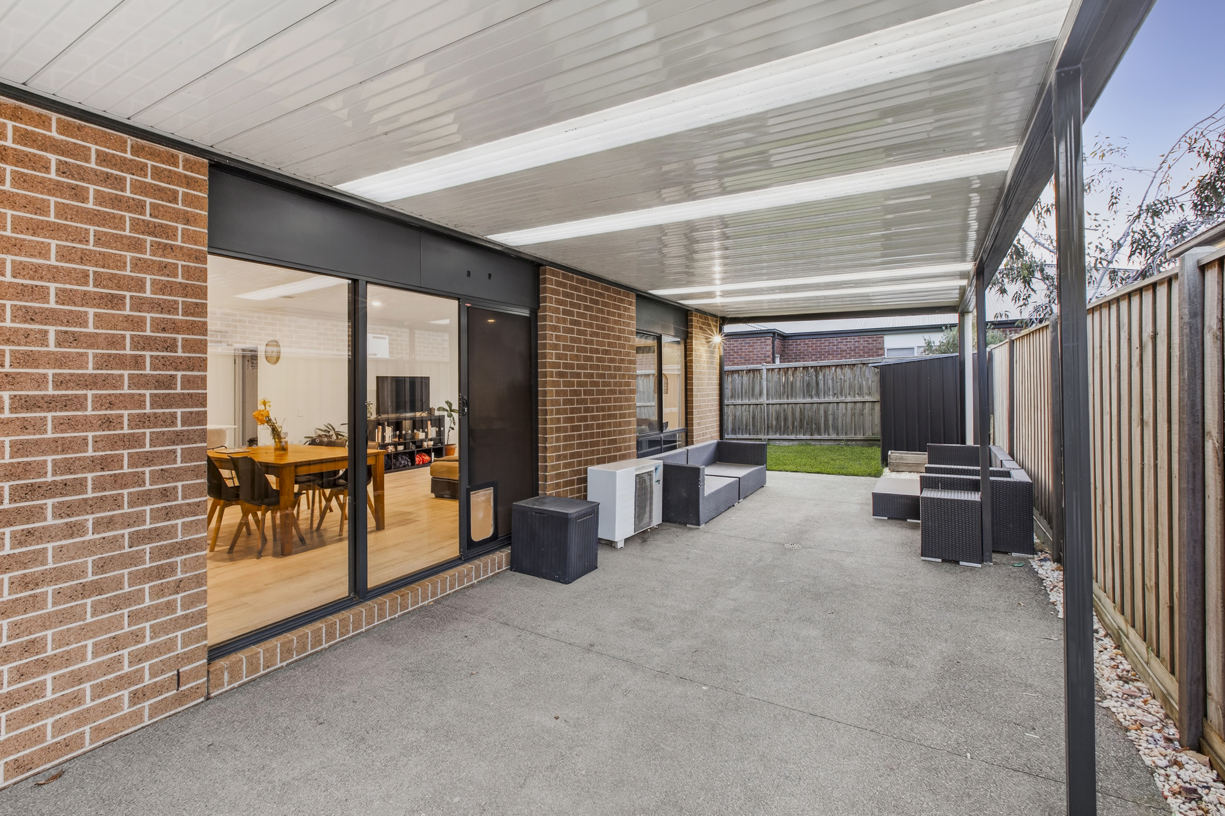 The home makes a striking first impression with its attractive façade, landscaped and low-maintenance gardens, outdoor lighting and exposed aggregate driveway and entry. In addition to the double garage, and sliding rear access gate provides secure space for a boat, trailer or caravan, complemented by convenient side gate access. The undercover alfresco with exposed aggregate flooring creates a fantastic entertaining zone, while the spacious yard, garden shed and established greenery offer room for children and pets to play. The property is fitted with 2.5 kw solar panels to the home helping boost the properties energy efficiency.