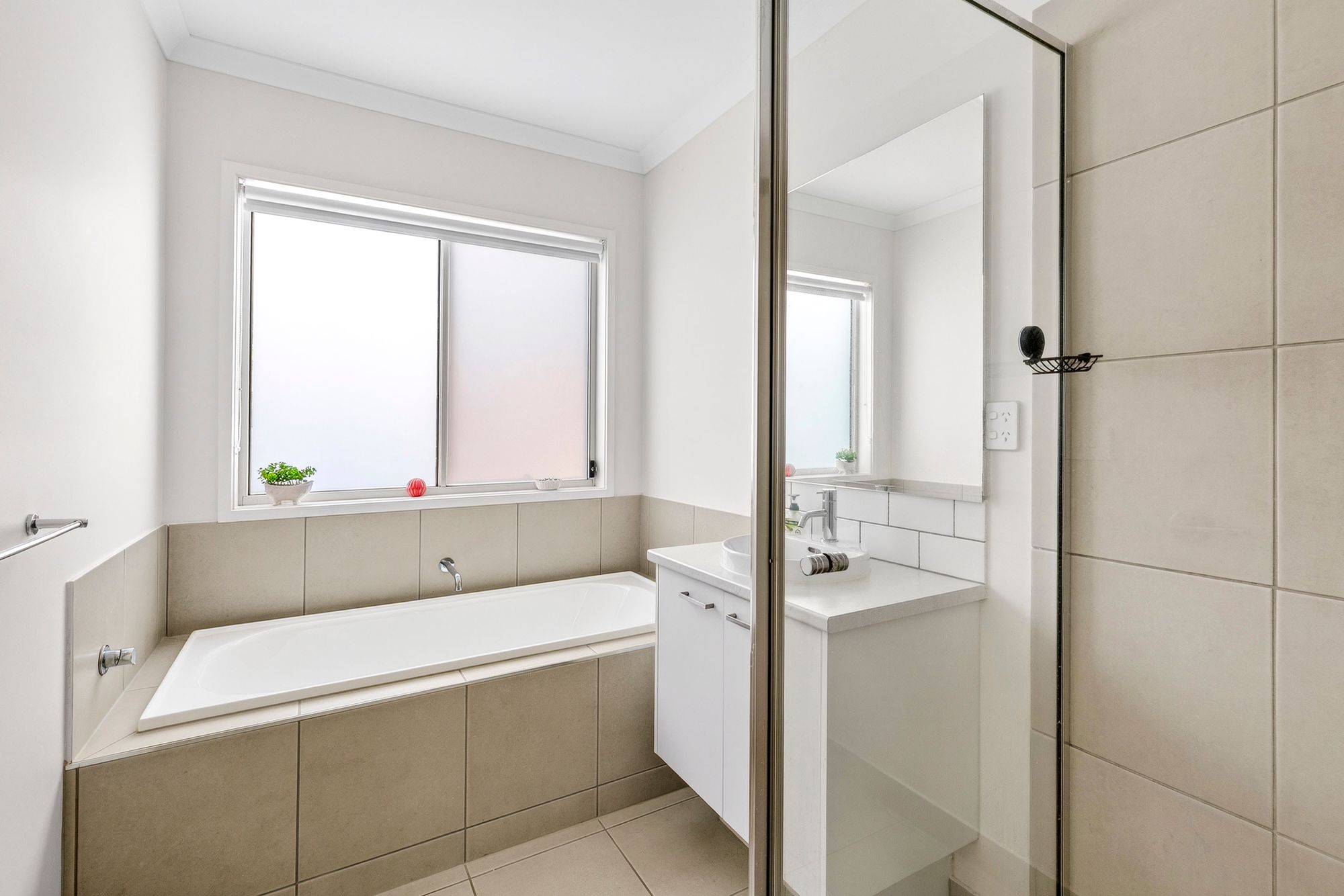 Master: Spacious, split system cooling, ducted heating, feature windows, double roller blinds, carpet, walk in robe.