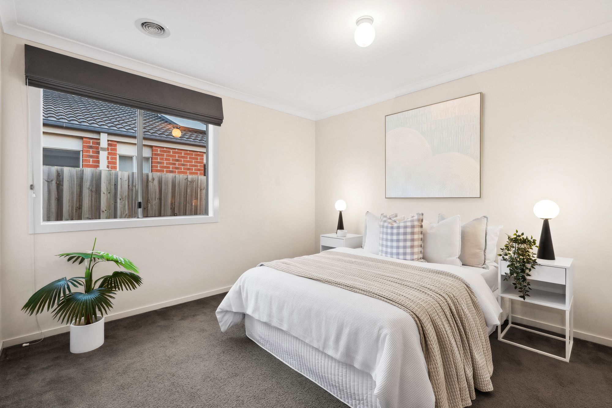 Queen size, carpeted, built-in sliding robes, ducted heating and windows with blinds, high ceilings