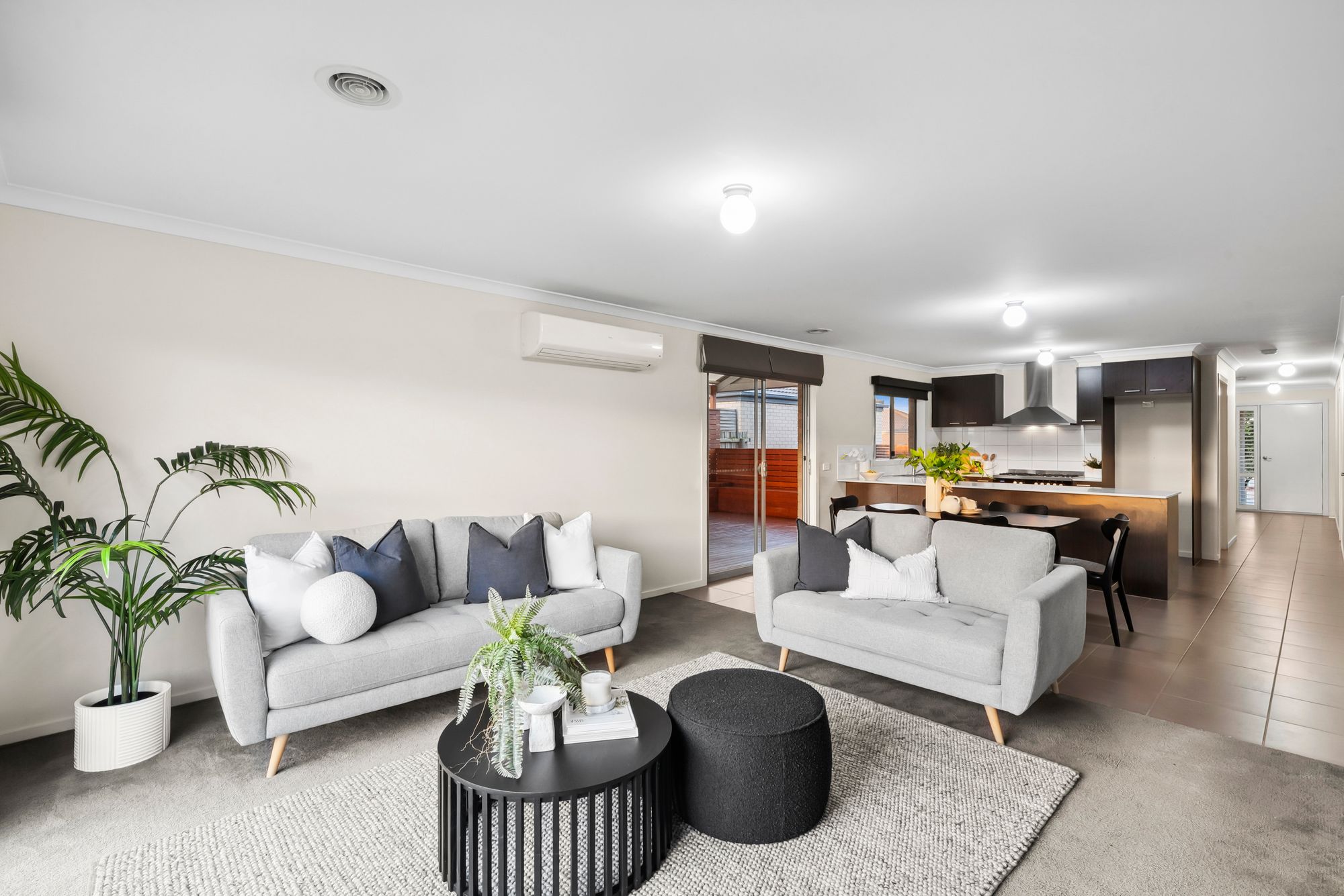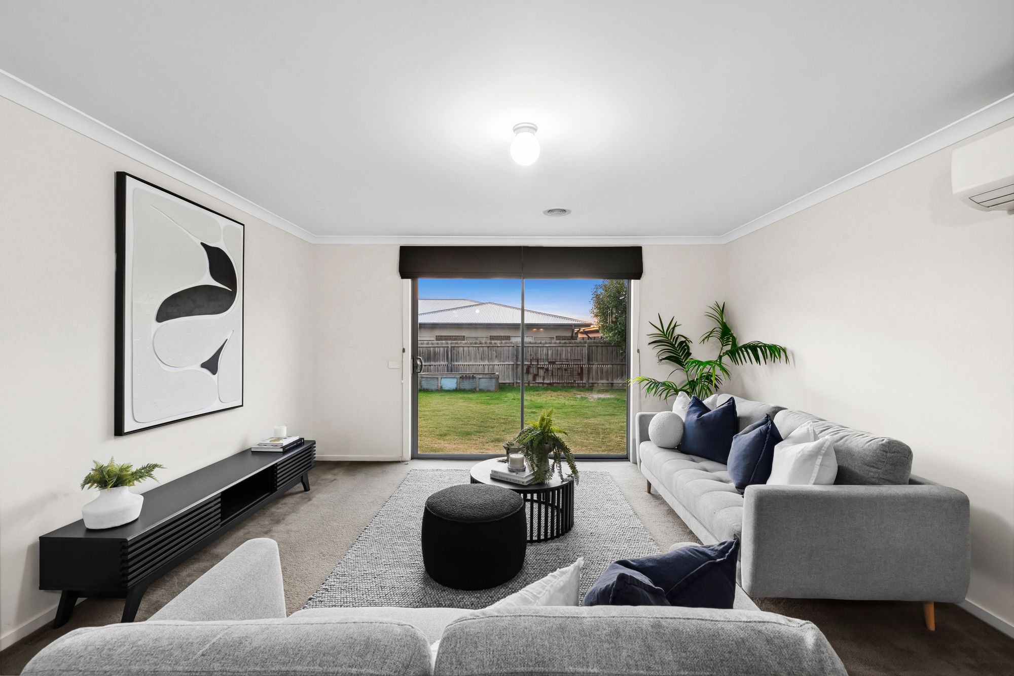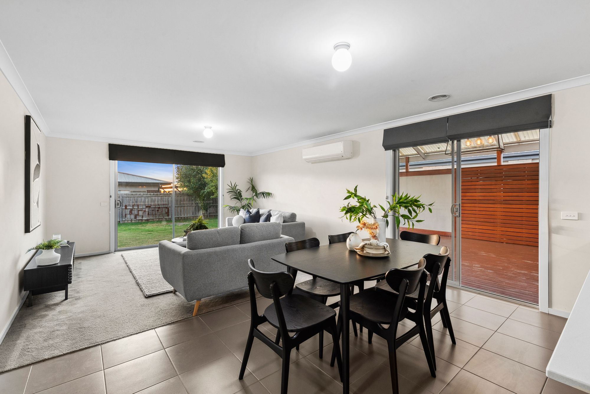An open plan living and living allowing for family and friends plenty of space to gather. Featuring tiled and carpeted floors, high ceilings, ducted heating, a split system, indoor/outdoor functionality, blinds, glass sliding doors to undercover alfresco and backyard,