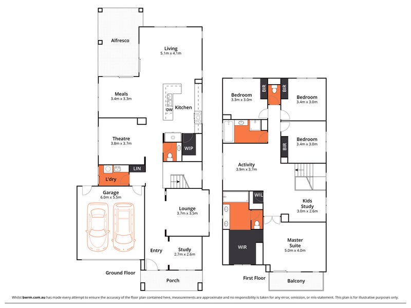 Mod cons – raised ceiling heights throughout, study secluded to front of house and a study upstairs, ducted heating & evaporative cooling throughout, laundry with cupboard storage & bench space, double lock up garage with internal access to home as well as rear roller door drive through access to backyard, powder room downstairs with toilet, basin, double glazed windows, ducted vacuum points.