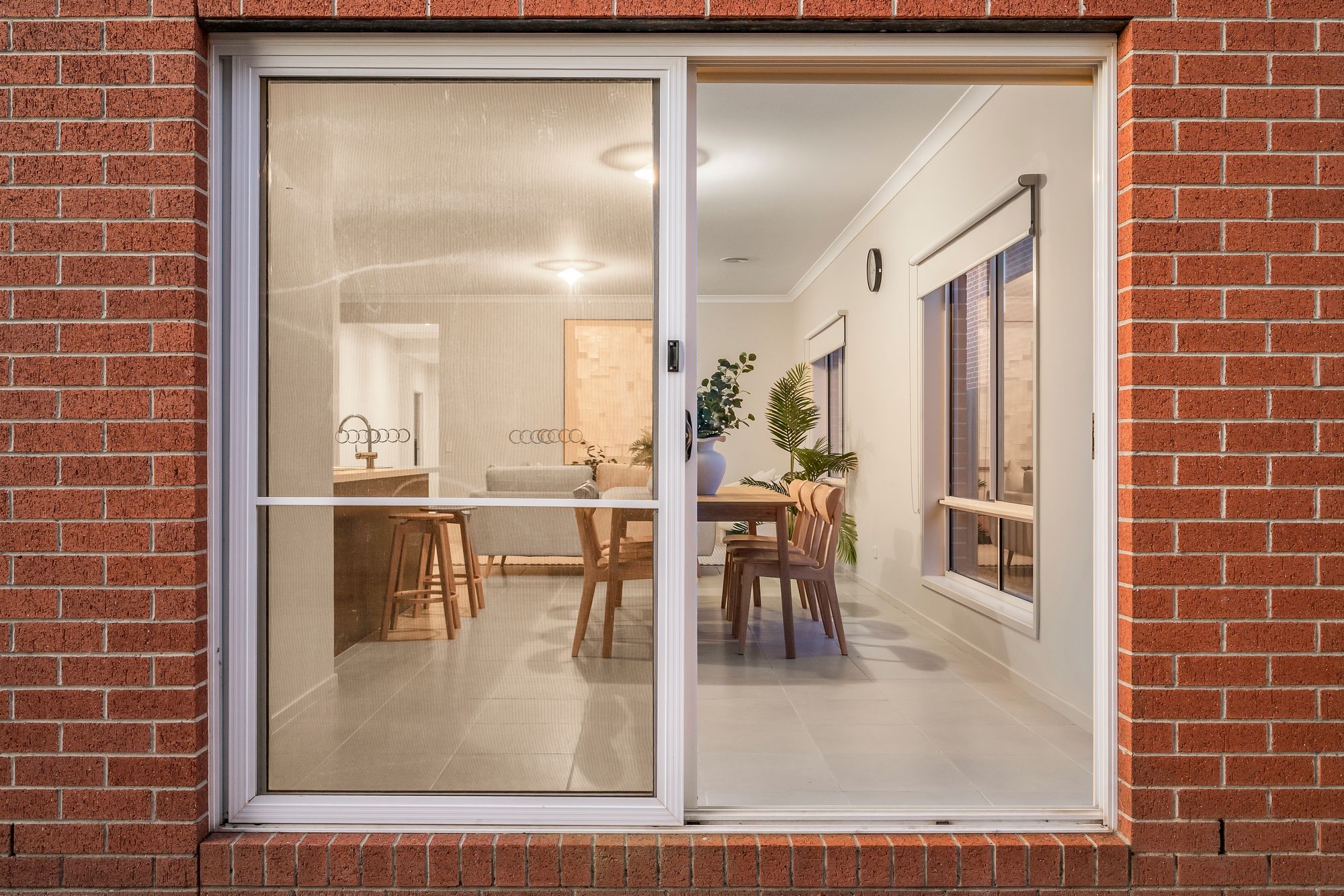 Living- spacious open plan adjoining living/dining/kitchen, tiled flooring, roller blinds, high ceilings, ducted heating, glass stacking doors leading to backyard which creates a large indoor/outdoor entertaining area