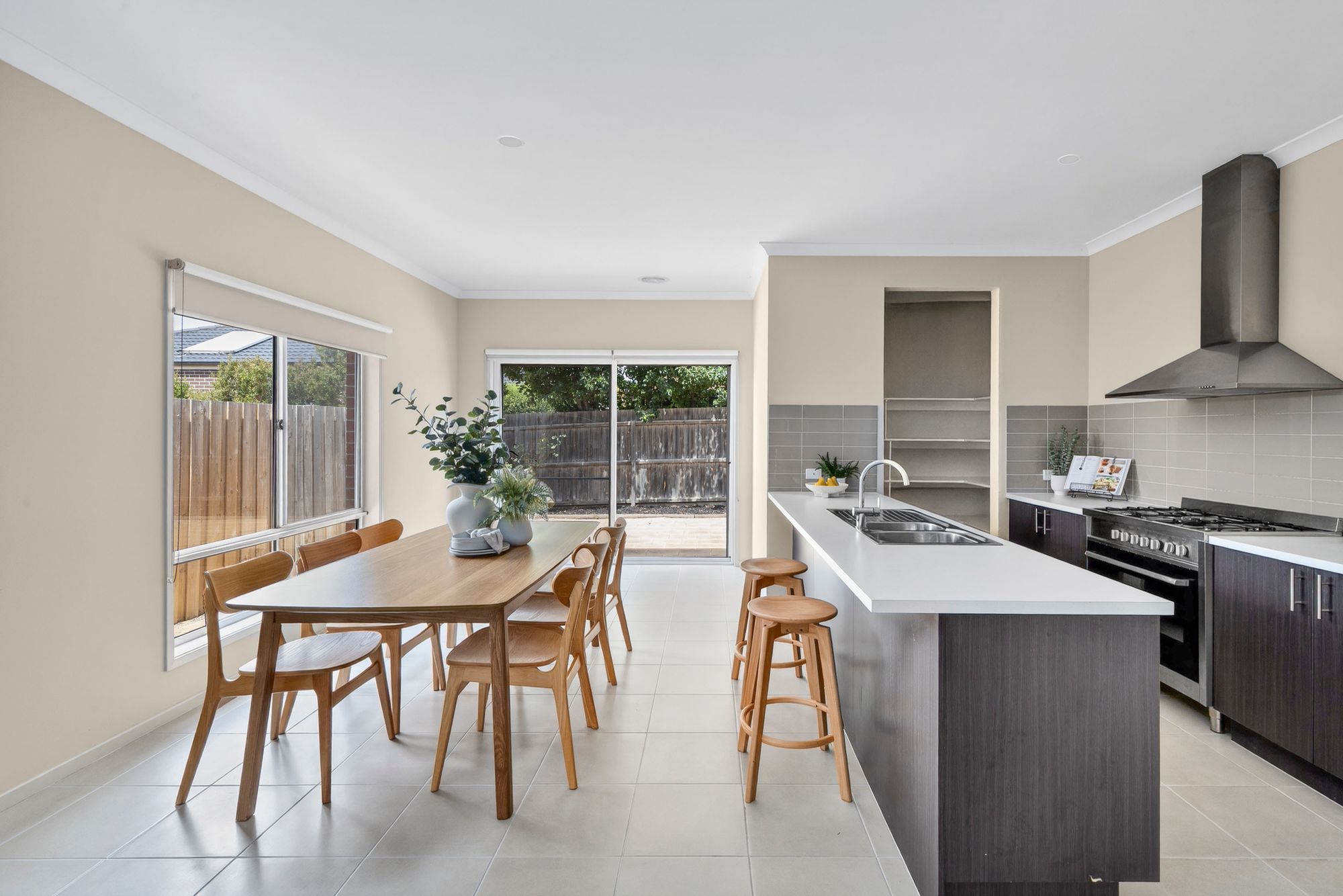 The floorplan offers 3 spacious bedrooms and two living areas, giving families the flexibility they need. The open-plan kitchen, living, and dining zone with high ceilings throughout is the home’s central hub, while the second living space provides a perfect retreat. Outdoors, the private backyard delivers low-maintenance relaxation and entertaining.