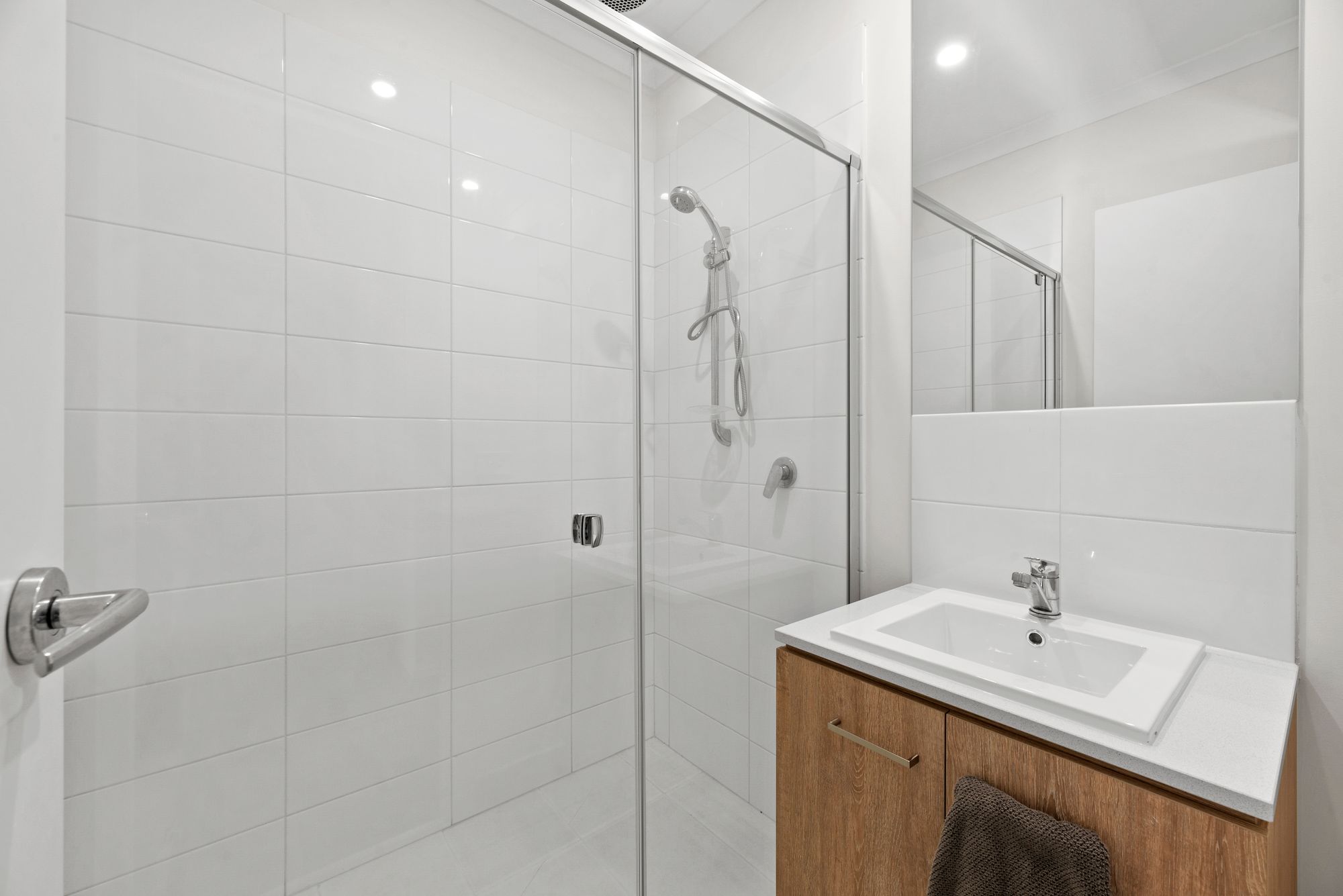 Ensuite: Semi-frameless shower, hand held shower head, 20mm stone benchtop, feature vanity with ample storage, open toilet.