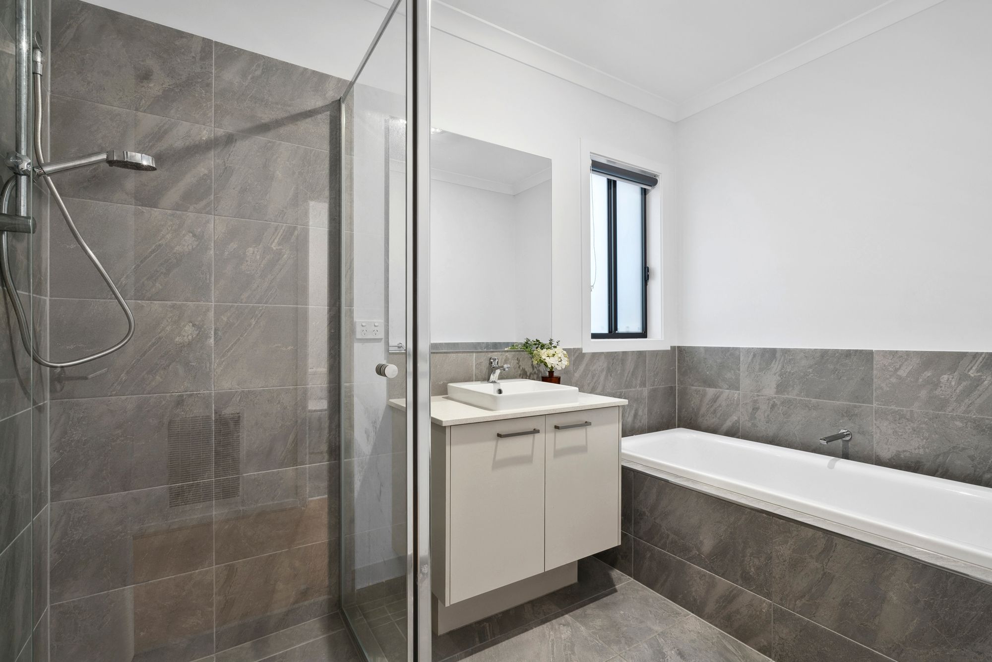 Additional Bathroom: Effortlessly servicing the household and the three bedrooms surrounding, the secondary bathroom homes a single basin on a 20mm stone benchtop vanity with a tiled/mirrored splashback, separate toilet, raised bath, downlights and frosted sliding window with blockout blinds.