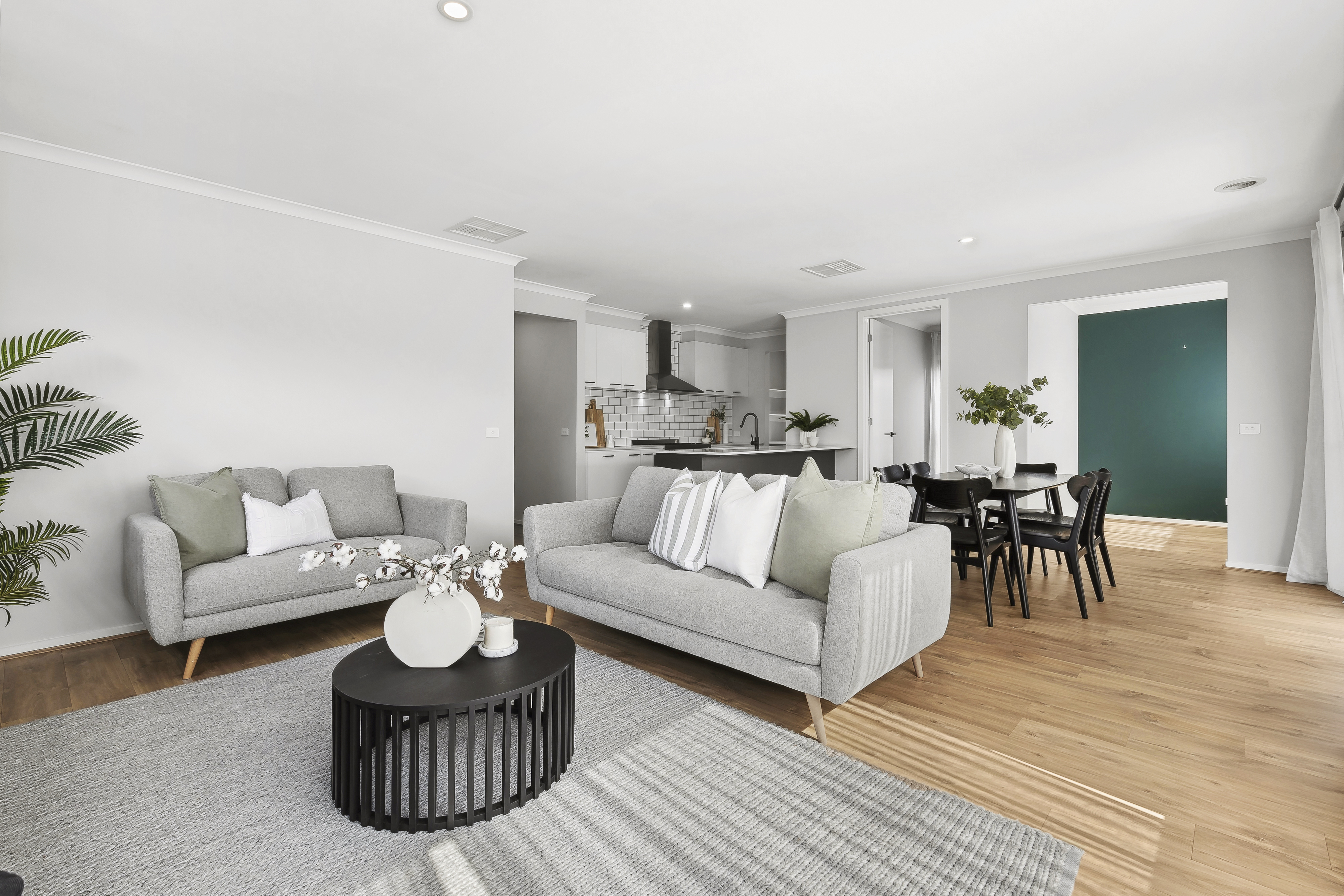 Living/Dining: Open plan, ducted heating & evaporative cooling, downlights throughout, timber laminate flooring, sheer curtains & roller blinds, sliding glass doors open to outdoor alfresco creating an indoor/outdoor flow