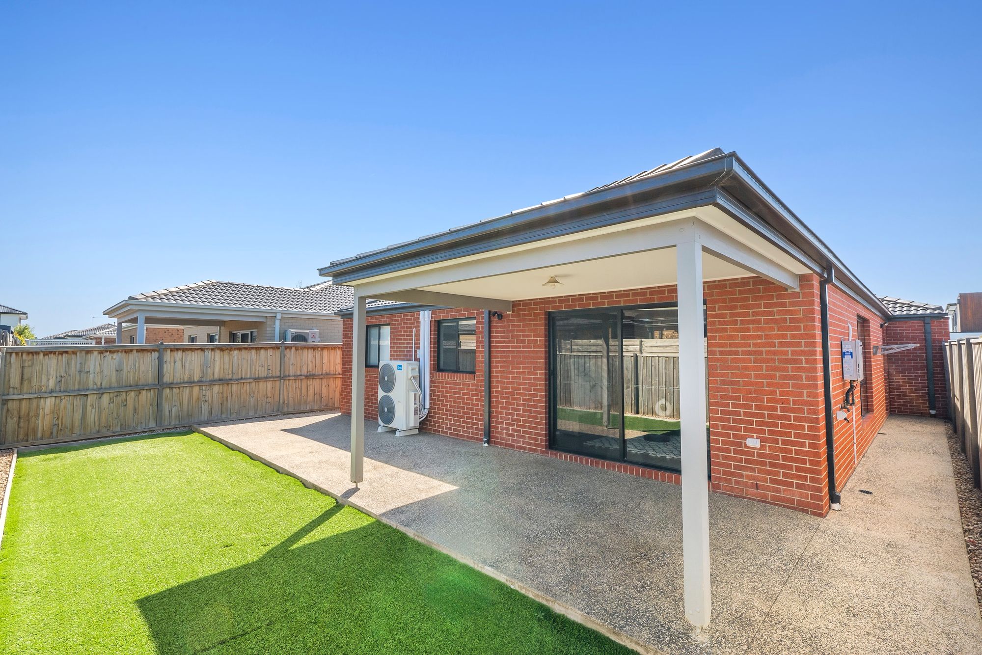 – Low-maintenance backyard with undercover entertaining area