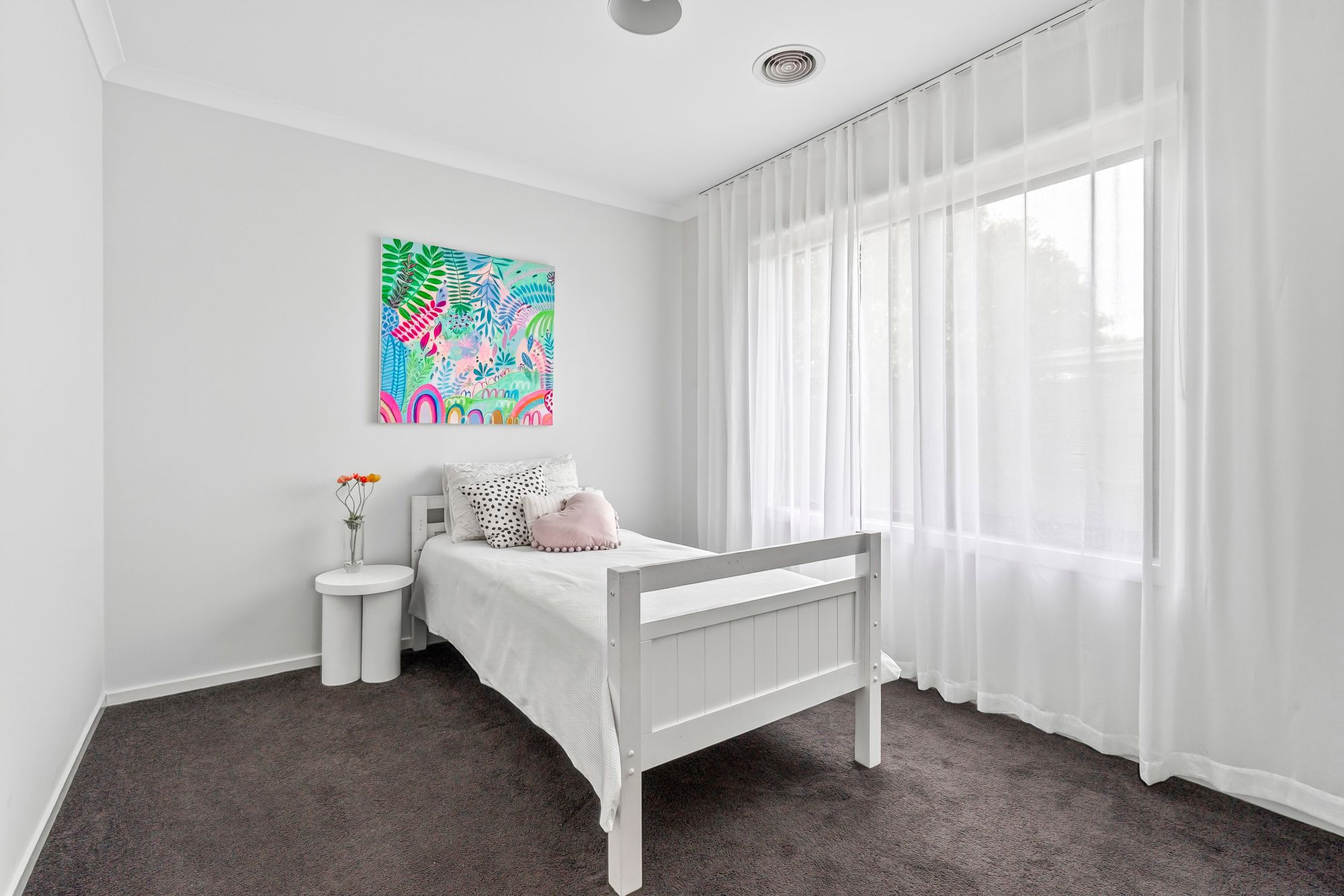 Additional Bedrooms: The additional bedrooms are thoughtfully designed with plush carpet and built-in robes, providing comfort and storage for family or guests. Wide double glazed windows with roller blinds and sheer curtains offer both natural light and privacy, while ducted heating and refrigerative cooling ensure a comfortable environment through every season.