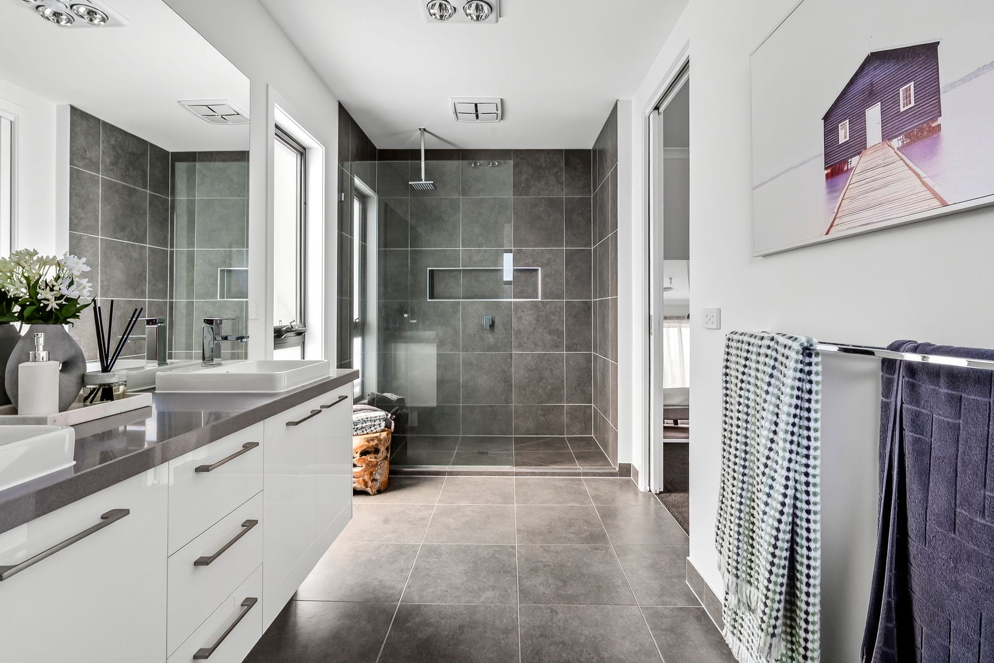 Master Suite: The luxurious master suite is a true sanctuary, featuring north-facing double glazed windows with roller blinds and sheer curtains that invite morning light while maintaining privacy. High ceilings, soft carpet underfoot, ducted heating, refrigerative cooling, and a ceiling fan ensure supreme comfort. An expansive walk-in robe provides ample storage, while the stylish ensuite impresses with dual basin vanity and 40mm stone benchtops, a large mirror splashback, upgraded cabinetry, and a stunning wall-to-wall shower with waterfall showerhead, niche, and floor-to-ceiling tiles. A private toilet, heat lamp, and square set cornices complete this sophisticated retreat.