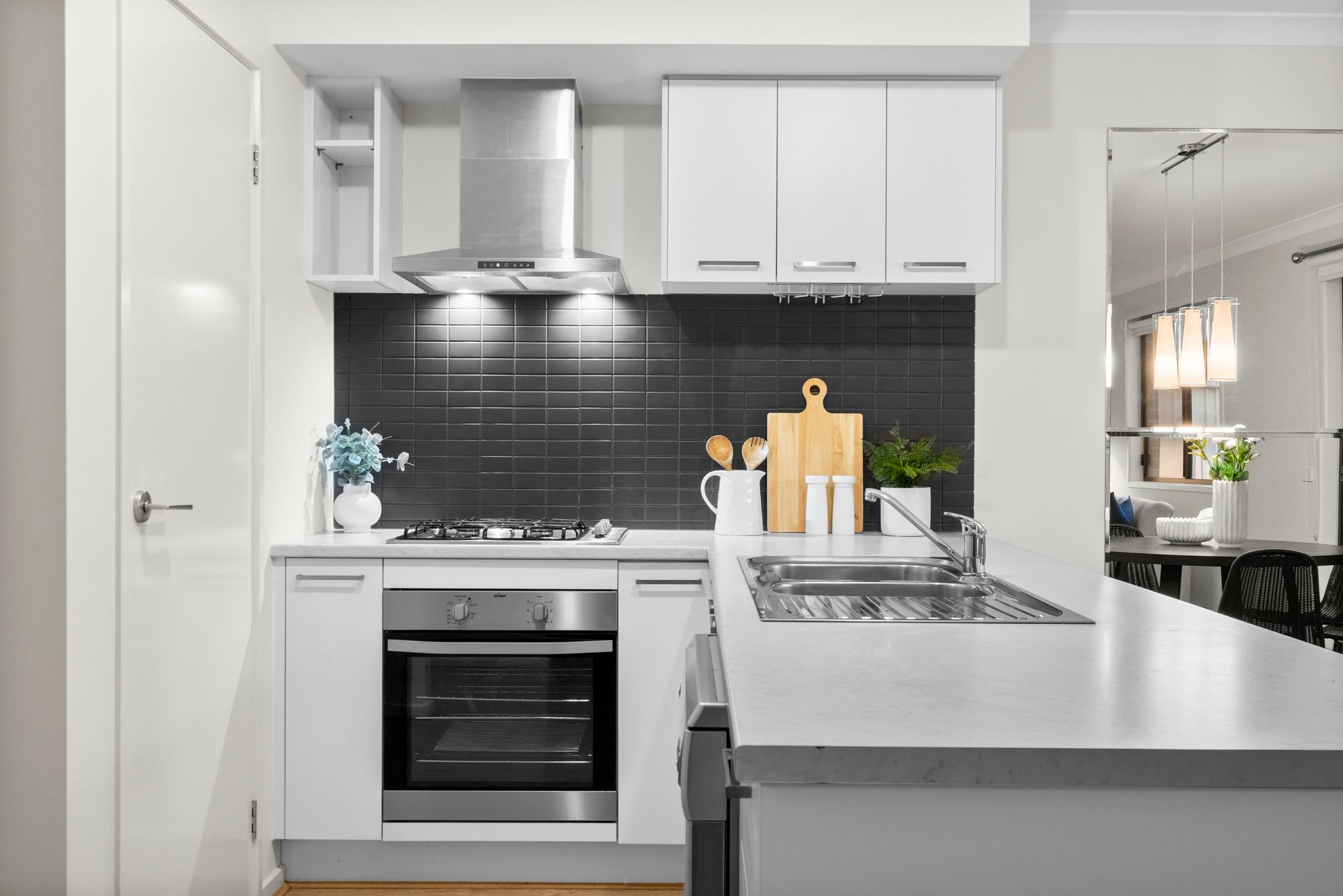 Kitchen: 600mm in-built appliances and rangehood, tile splashback, built-in panty, double bowl sink, chrome fittings, dishwasher, overhead cabinetry, powerpoints, fridge cavity.