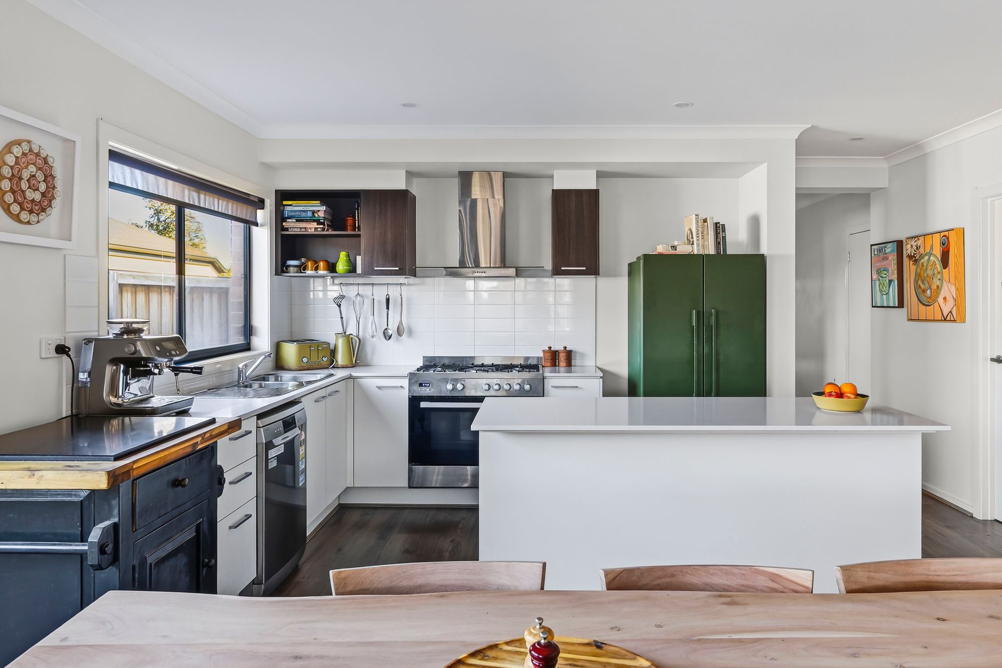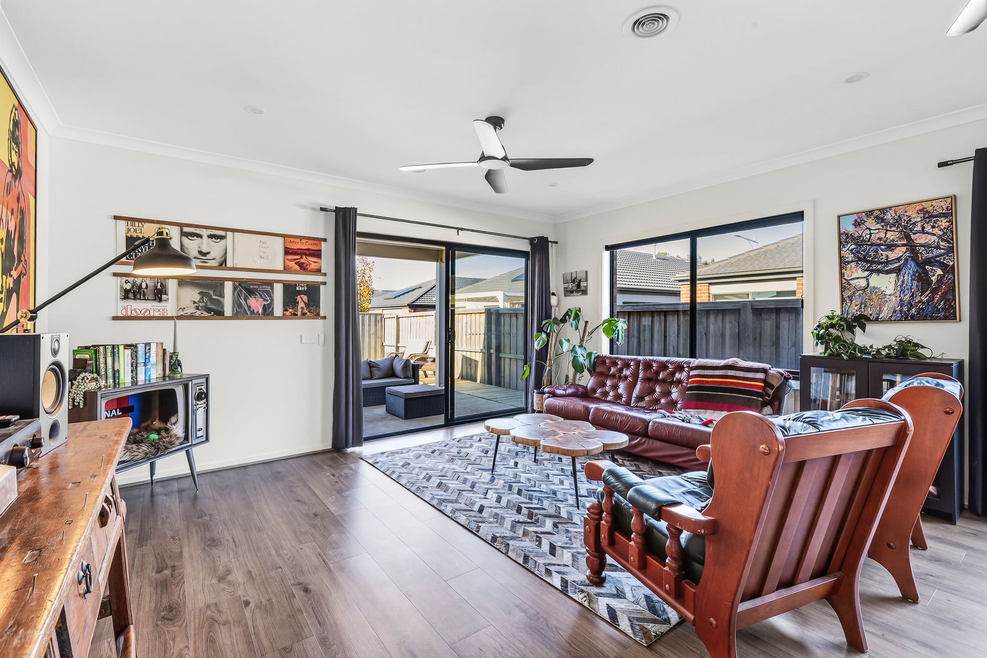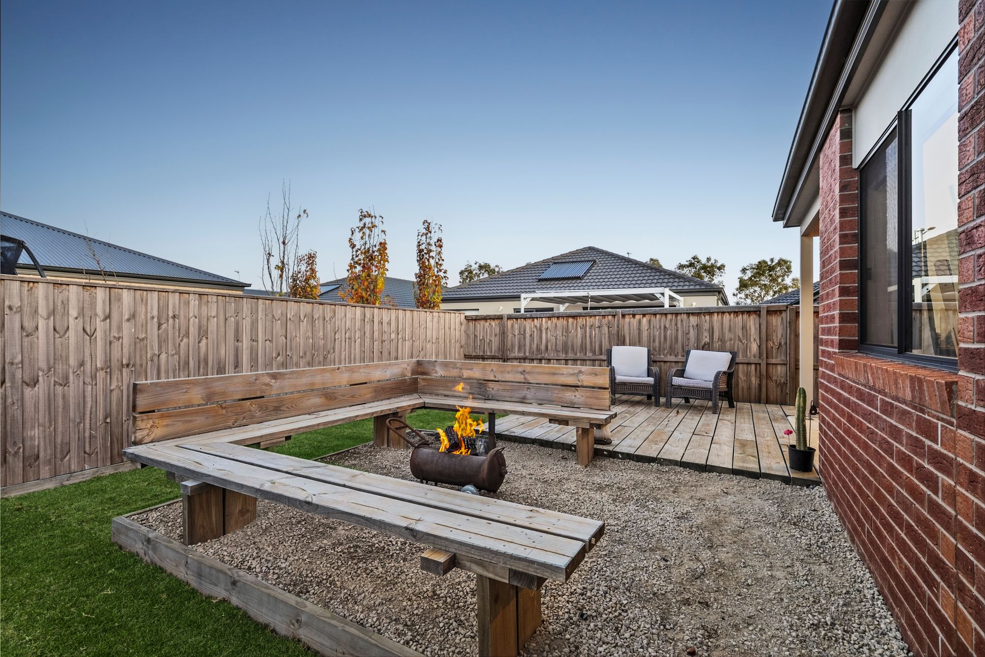 At the heart of the home lies a stunning kitchen featuring sleek stone benchtops and stainless steel 900mm appliances—combining practicality with elegant design.The open-plan kitchen, living, and dining areas flow seamlessly onto the outdoor alfresco, creating a perfect indoor-outdoor connection for entertaining and everyday living. These light-filled spaces are complemented by sliding doors, ducted heating, and ambient downlights, ensuring all-seasons comfort. Designed with family functionality in mind, a secluded wing of the home houses three additional bedrooms, the main bathroom, and a second living area—ideal as a kids’ retreat, study zone, or quiet lounge away from the main living space. The outdoor entertaining area boasts extended decking, fire pit seating area and a grassed space, providing the perfect space to enjoy with family and friends.