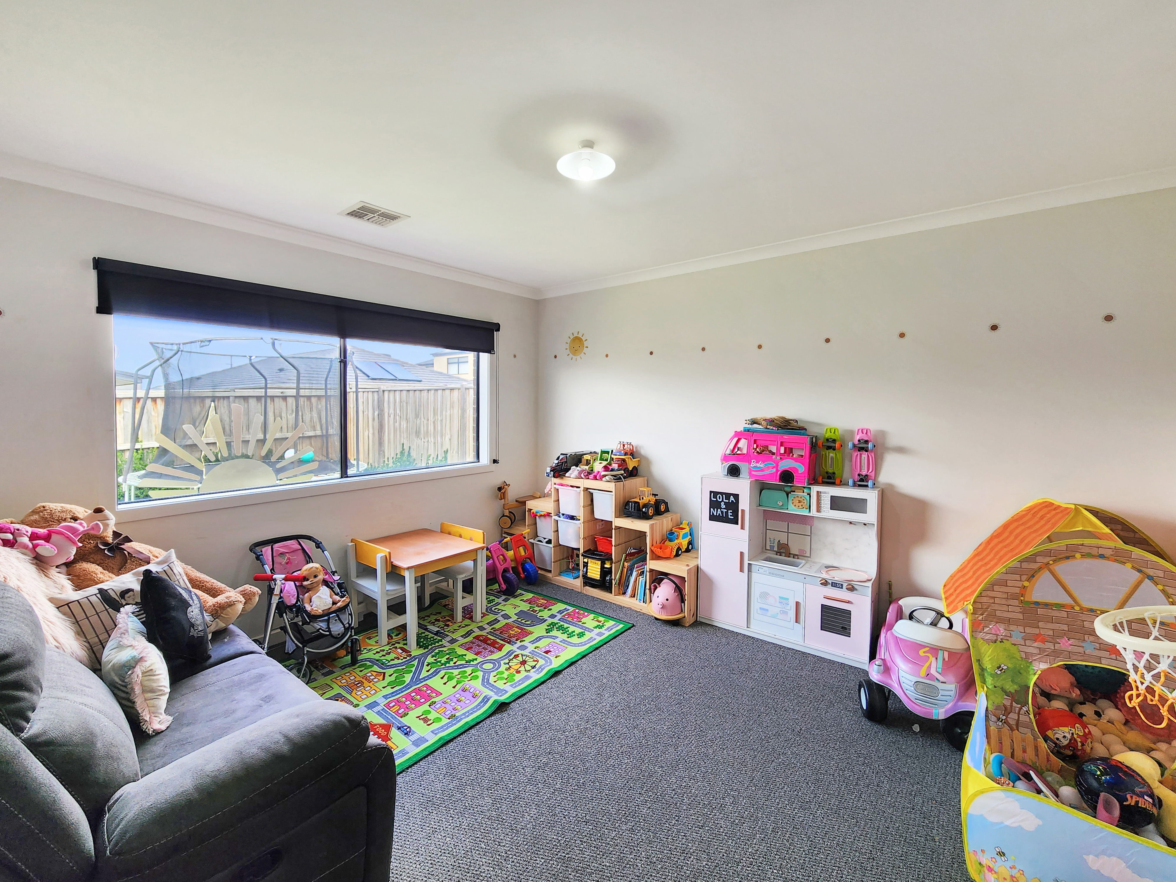 Additional Living Space: Perfect as a second lounge or media retreat, this additional living zone offers versatility for the modern family. Featuring plush carpet, high ceilings, and wide windows with roller blinds, it provides a relaxed and private environment. Comfort is maintained through ducted refrigerative cooling and heating, ensuring it’s a space to enjoy in every season.