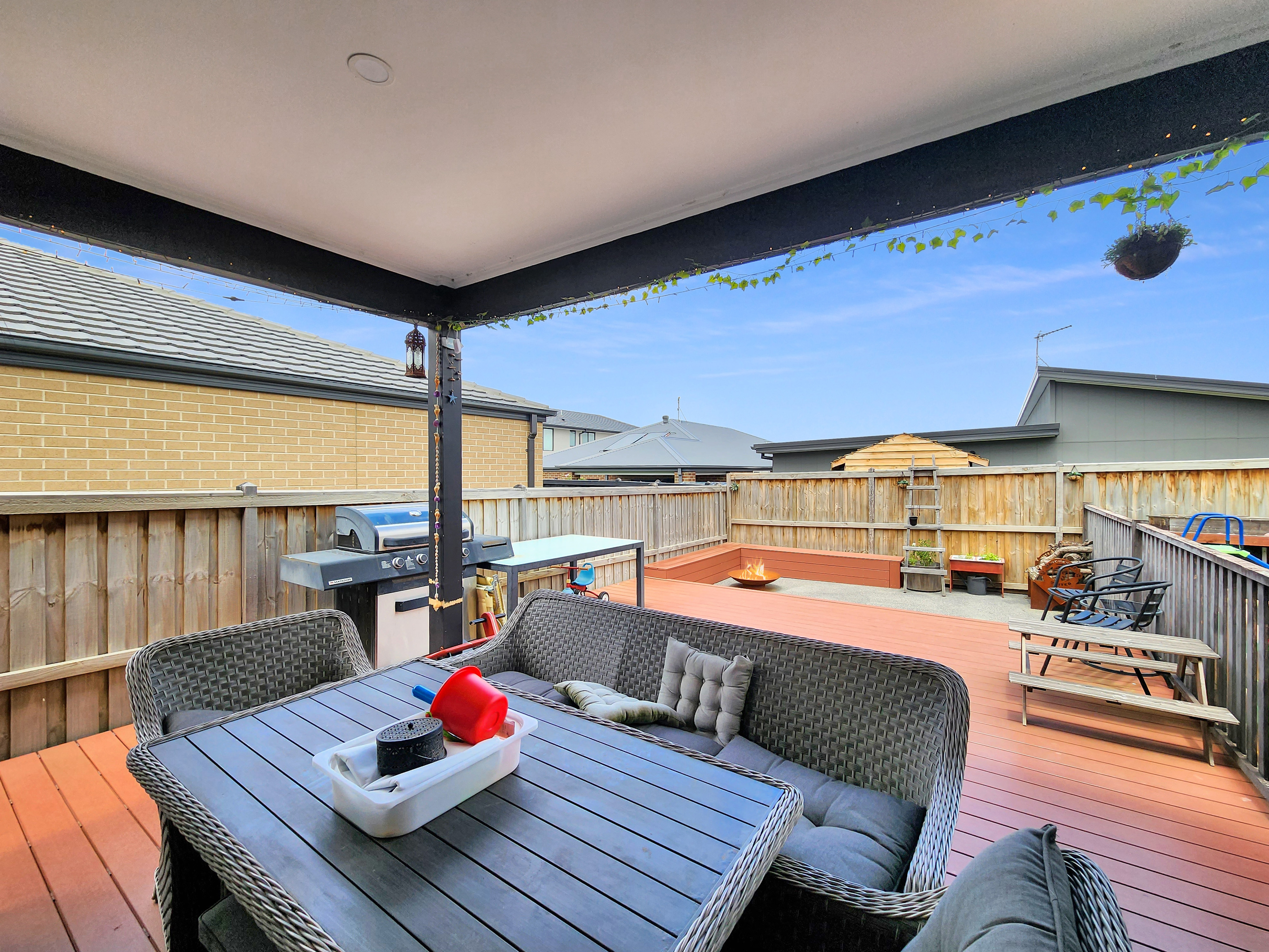Outdoor: This home’s street presence is second to none, with a high-end façade enhanced by upgraded lighting and manicured gardens. Garden beds with established plants create a lush entry, complemented by gated side access, exposed aggregate driveway, and a decked walkway leading to the front door. An entertainer’s dream awaits in the expansive south-west facing backyard. The incredible deck and undercover alfresco area feature downlights and built-in seating to create a perfect firepit or BBQ zone. Manicured garden beds and lush lawn surround the area, while exposed aggregate pathing and a rear pad provide practicality and style.