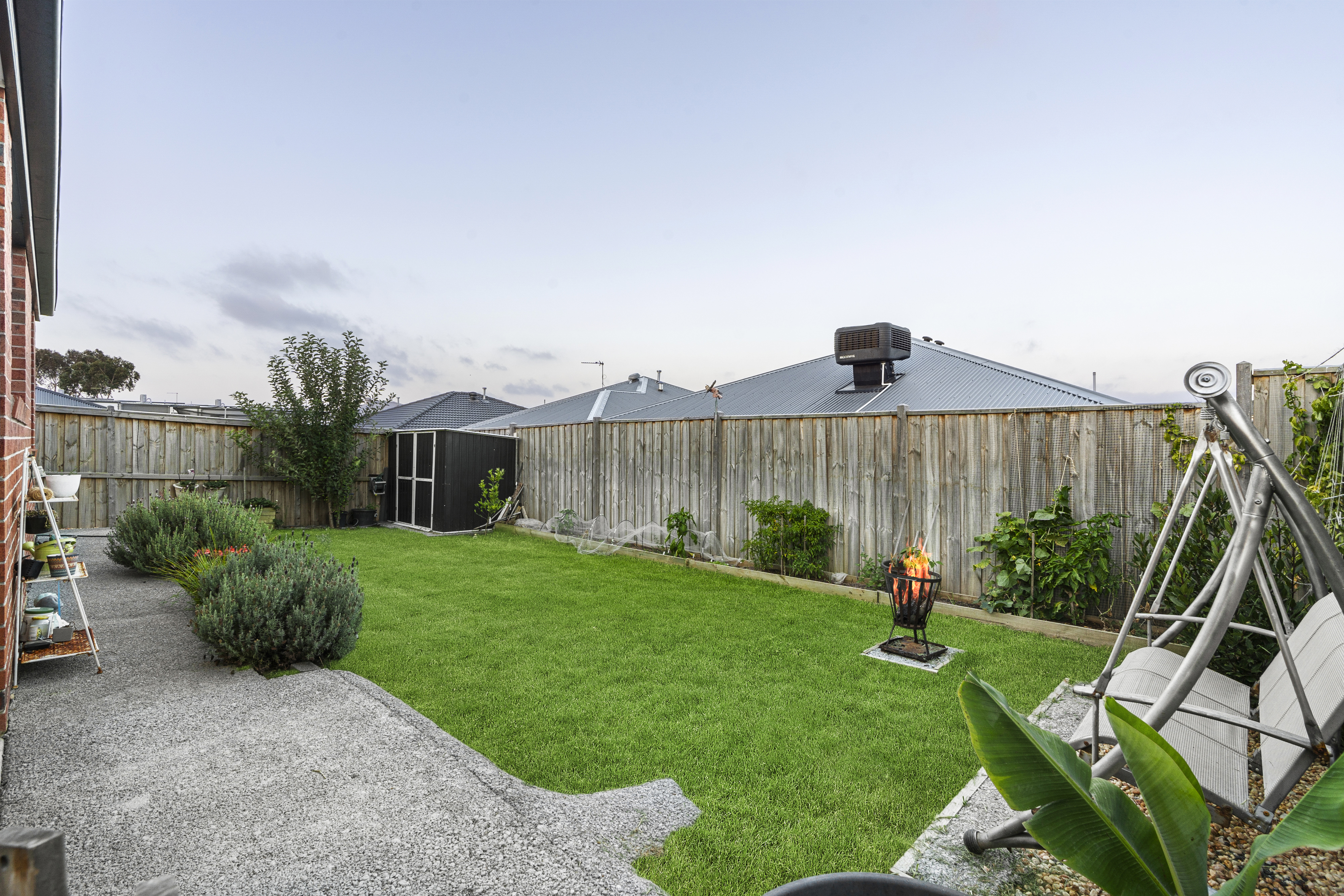 Outdoor: Undercover alfresco with concrete pad, grass area with garden beds and space for fire pit, garden shed, well maintained front and back garden, solid paths surrounding home to garage and single side gate access.