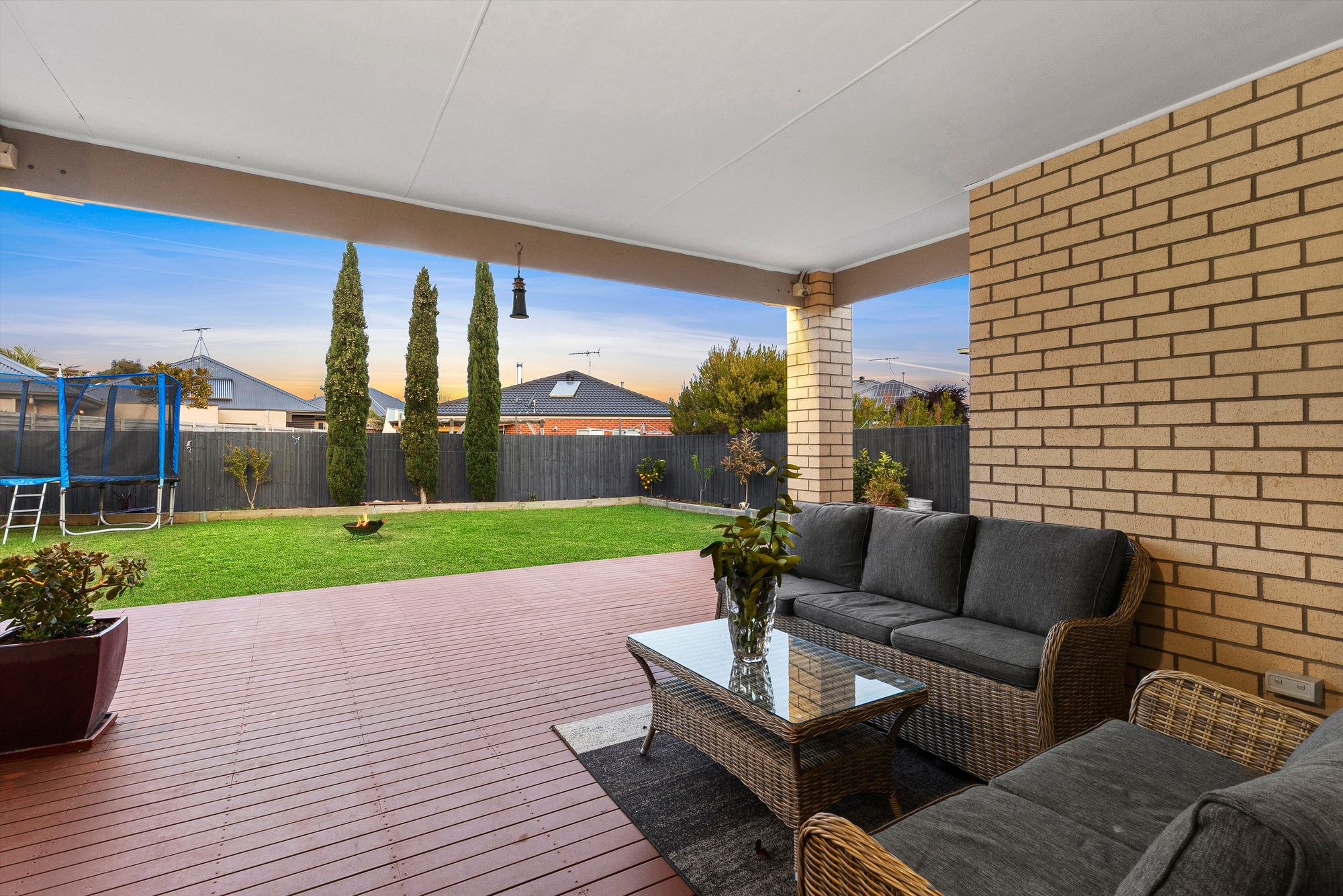 Outdoor: Undercover decked alfresco, extended decking, large grassed area, sensor lights, painted fences, side gate access.