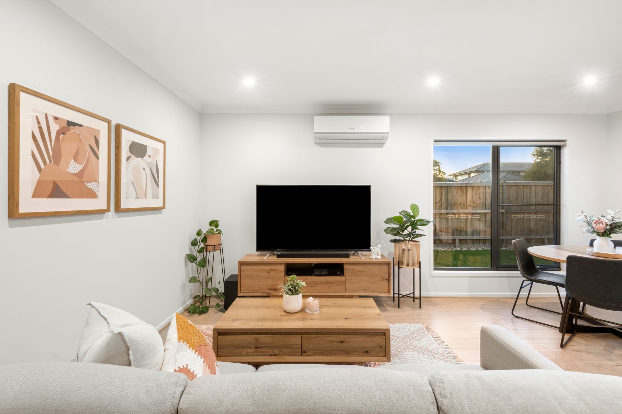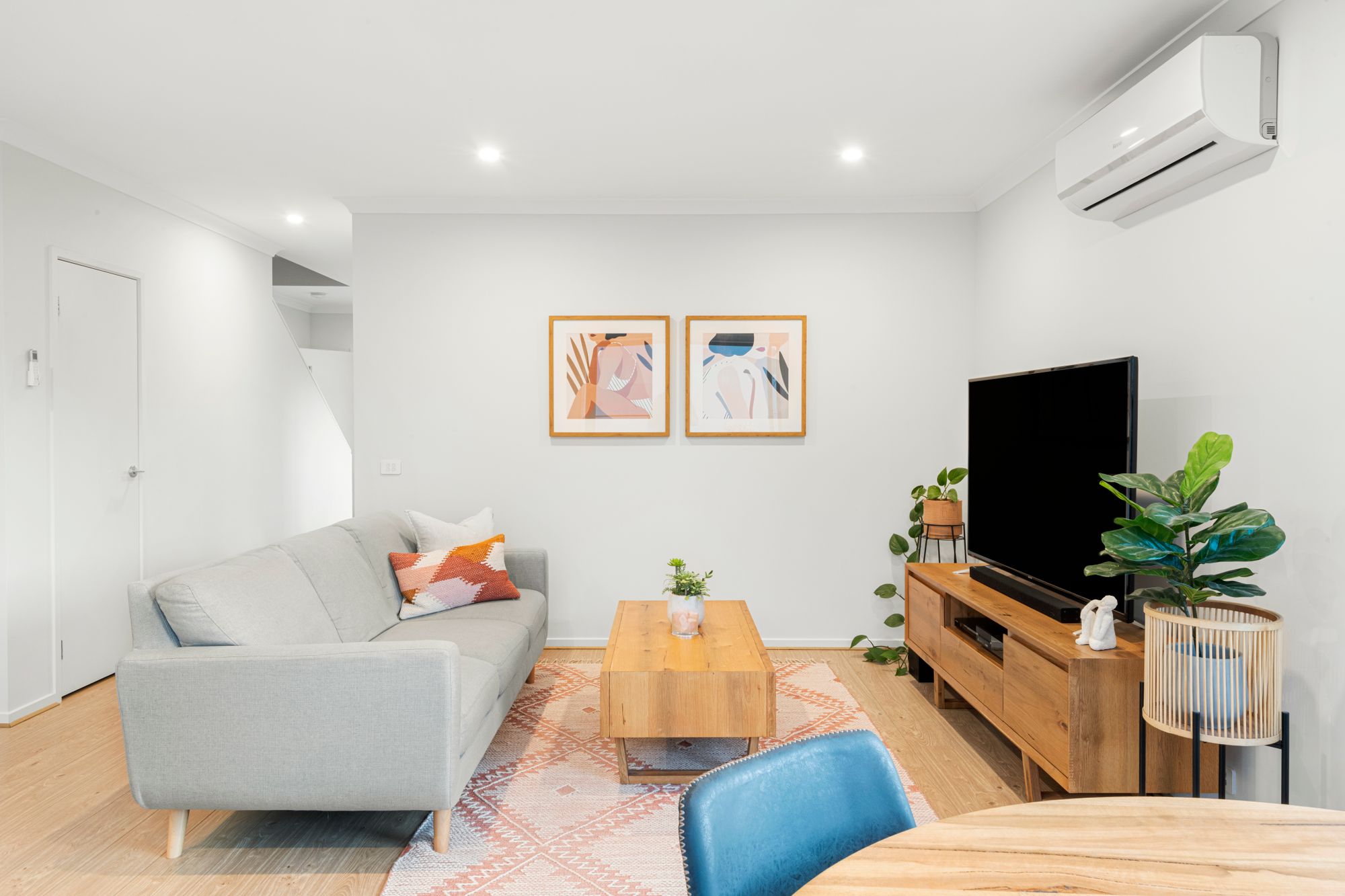 Mod cons: large under-stair storage cupboard, Opticomm access, exclusive Club Armstrong access (just a few minutes walk down the road), extra toilet & powder room downstairs, downlights throughout, split systems installed both upstairs and downstairs