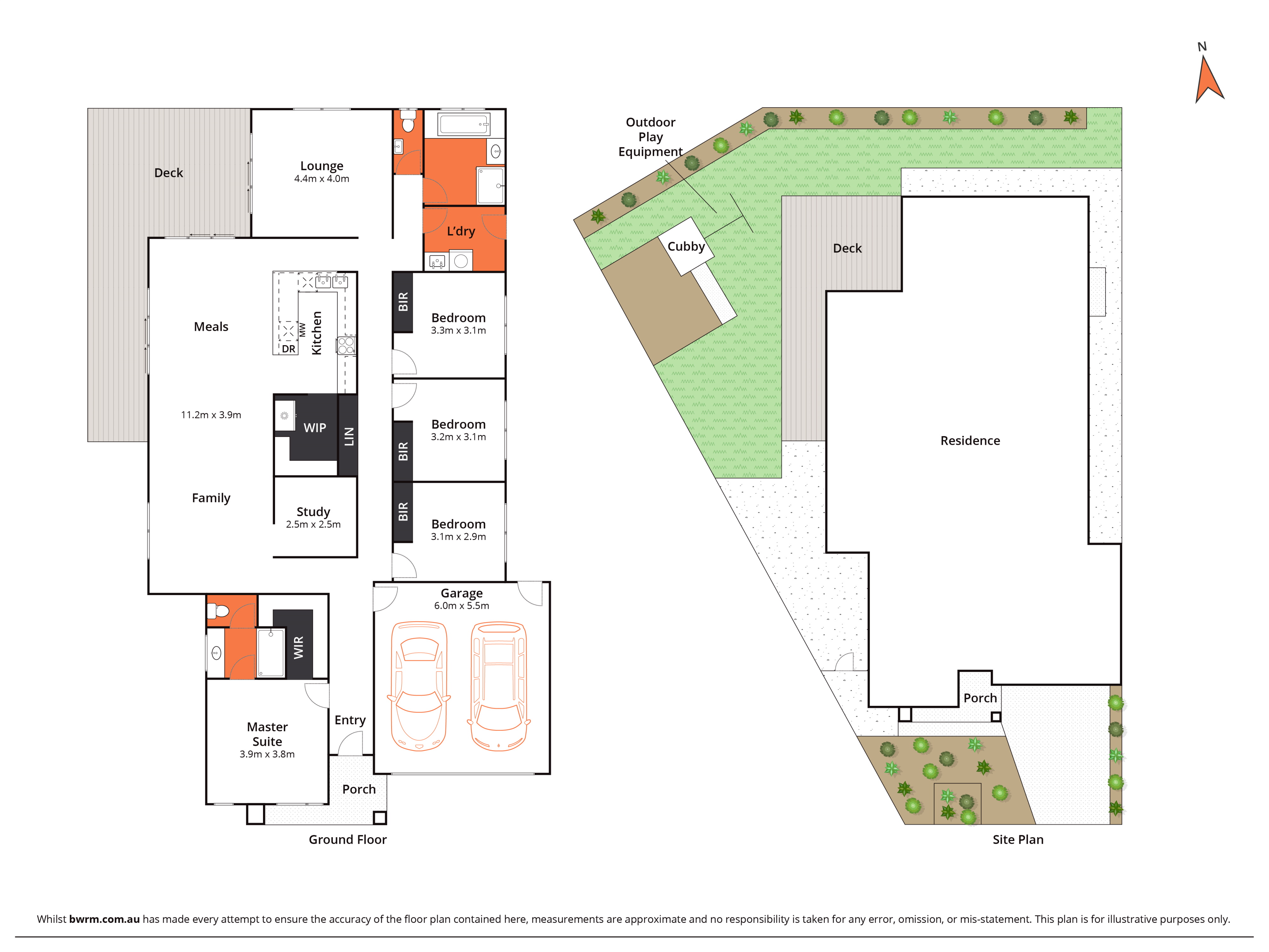 Outdoor: Extended sun-exposed outdoor entertaining area, decking, large yard with grass, crushed rock and well-maintained garden beds, single gate side access, fence toppers, universal playground & swing-set